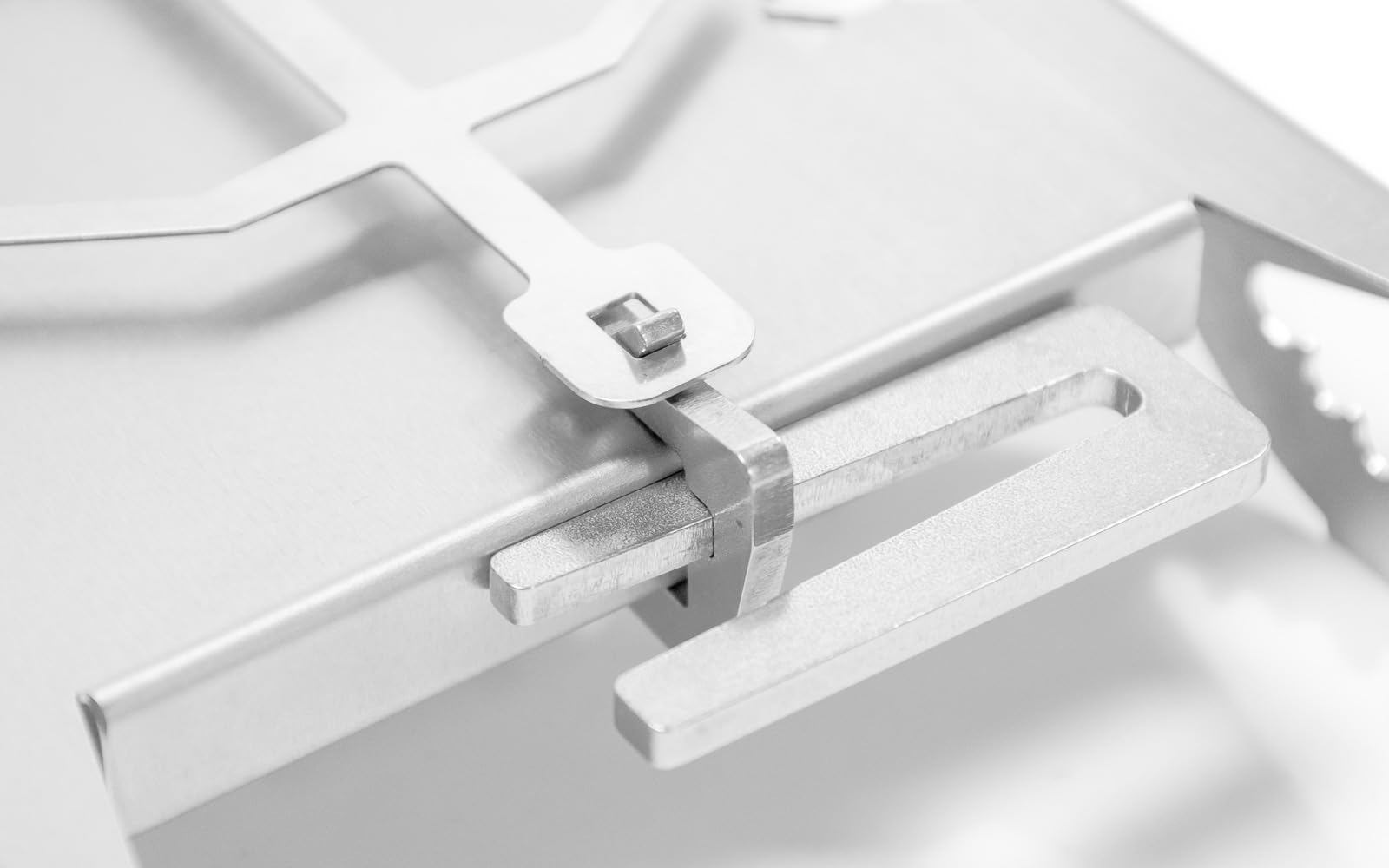 - Innovativer Spannmechanismus: Dank des einzigartigen Klemmsystems lassen sich Fische und Fleischstücke unterschiedlicher Grösse sicher befestigen, ganz ohne umständliches Bohren und Schrauben.