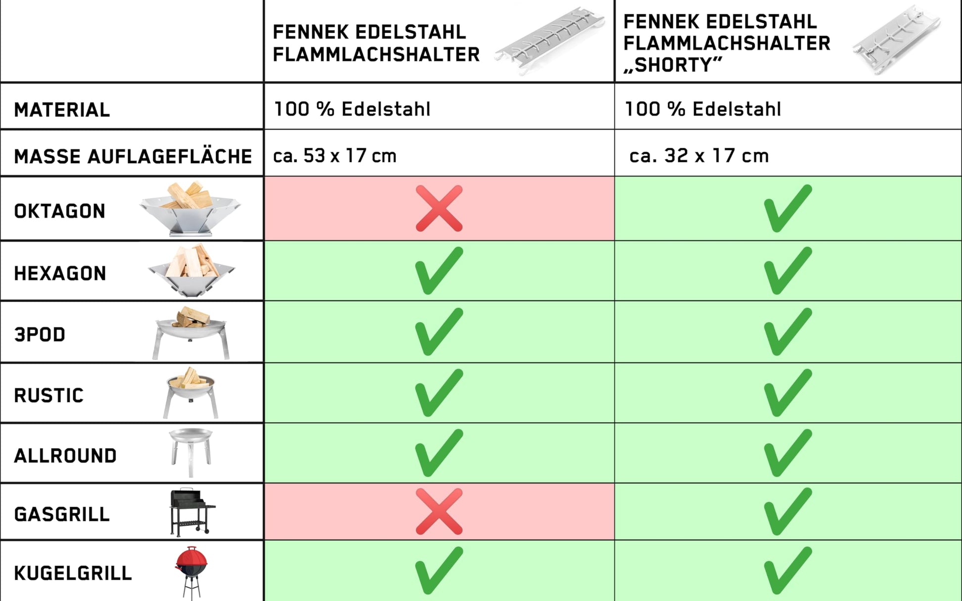 FENNEK Shorty Flammlachshalter Edelstahl für Grill & Feuerschale