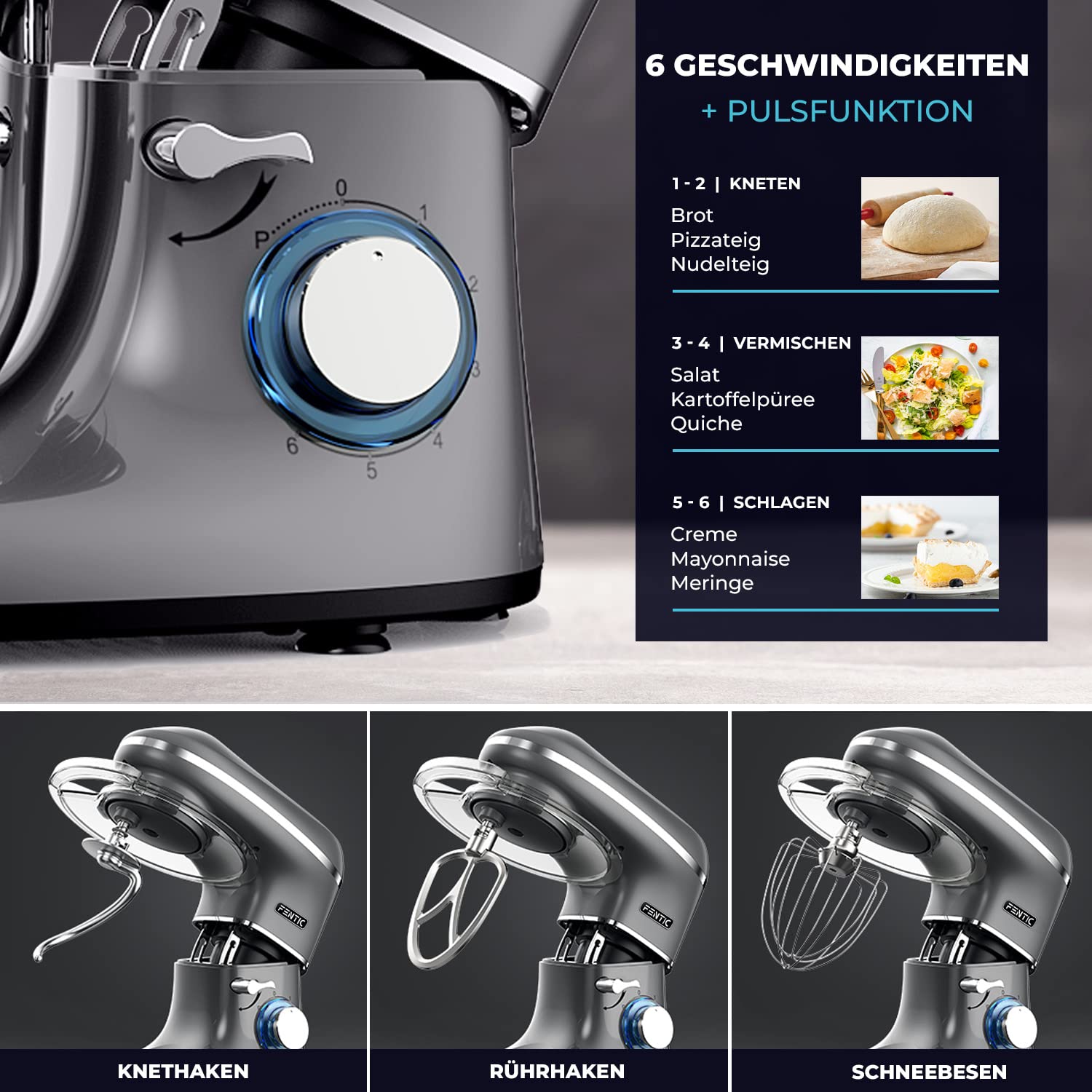 Fentic Küchenmaschine 2000W, 6.2L Edelstahl Rührschüssel - Anthrazit