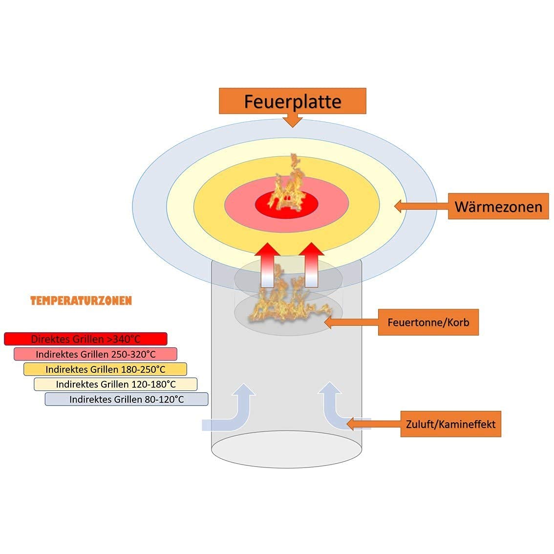 - Kompatibel mit Feuerplatten und erweiterbar mit diversem Zubehör wie Anstecktischen oder Flammlachsbrettern.