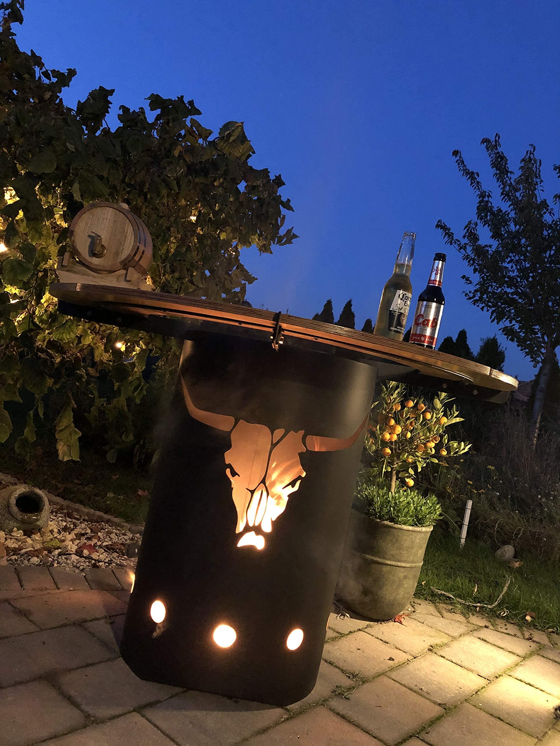 Feuertonne Stahlfass für Feuerplatte – Stierkopf #176