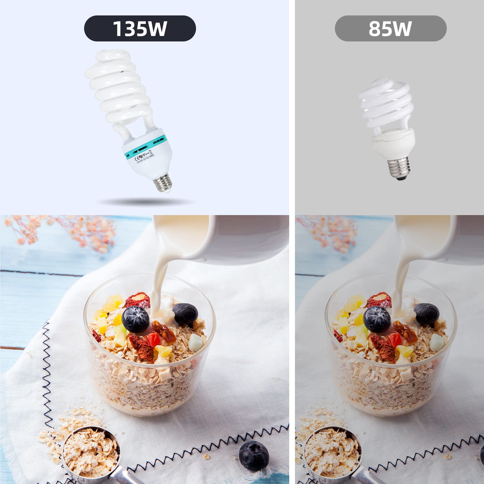 - Zwei leistungsstarke 135W-Tageslicht-Energiesparlampen (5500K).