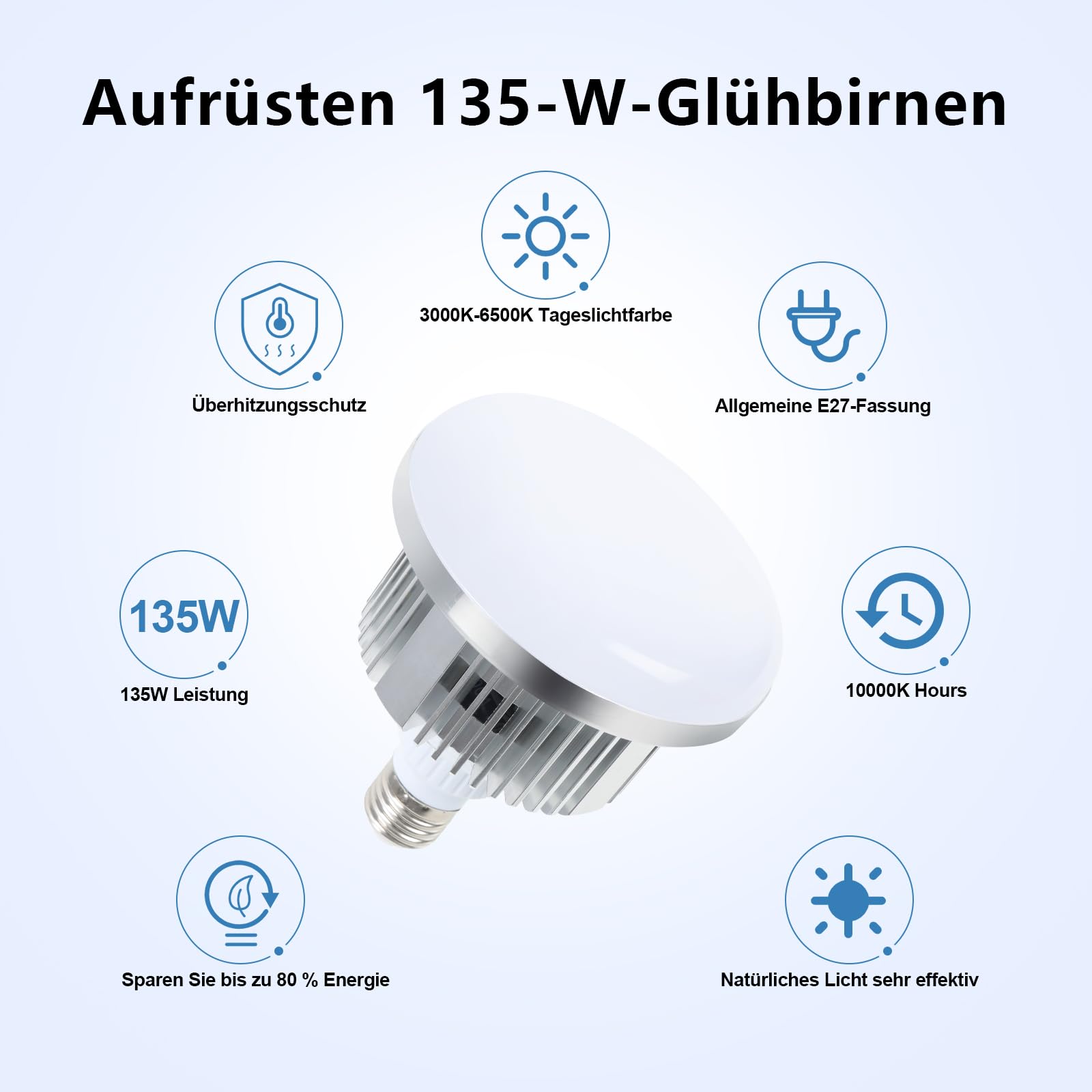 - Leistungsstarke LED-Technik: Jede Softbox ist mit einem 135W LED-Leuchtmittel ausgestattet, das aus 140 hochwertigen Lichtperlen besteht. Dies sorgt für eine helle, klare Ausleuchtung und spart gleichzeitig bis zu 80% Energie.