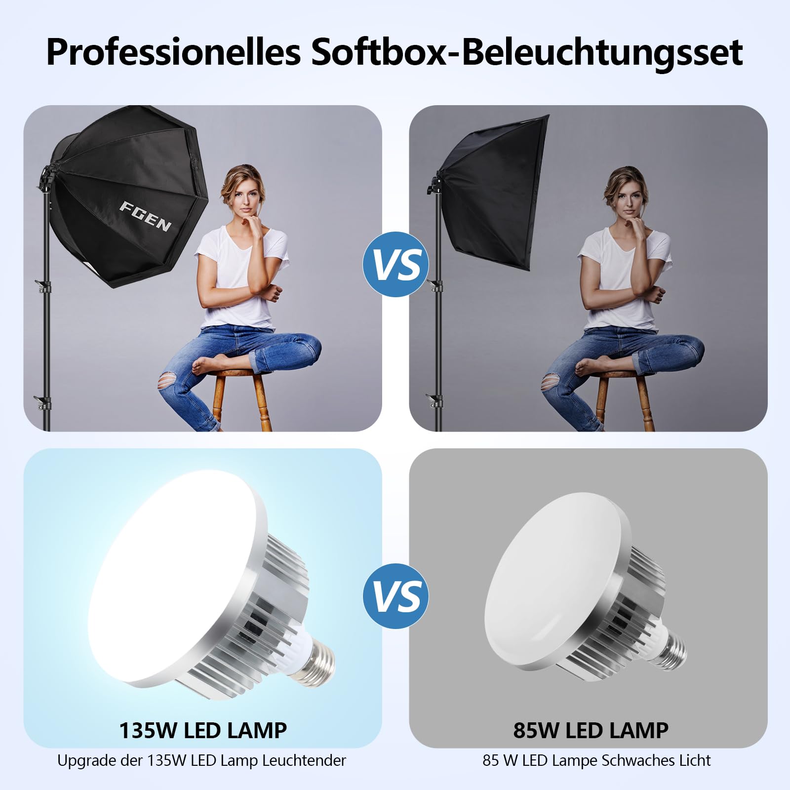 FGen Softbox Set LED Fotolicht – 70cm Achteckig 135W