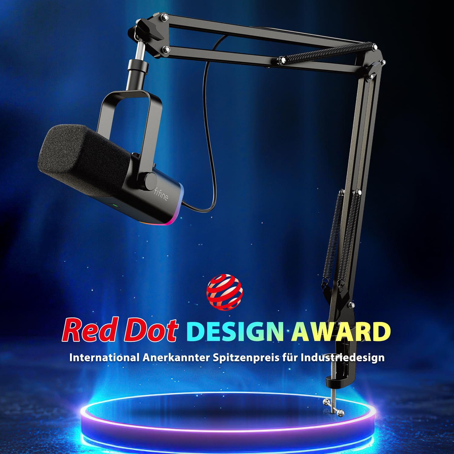 FIFINE XLR USB Dynamisch Streaming Mikrofon – mit Arm