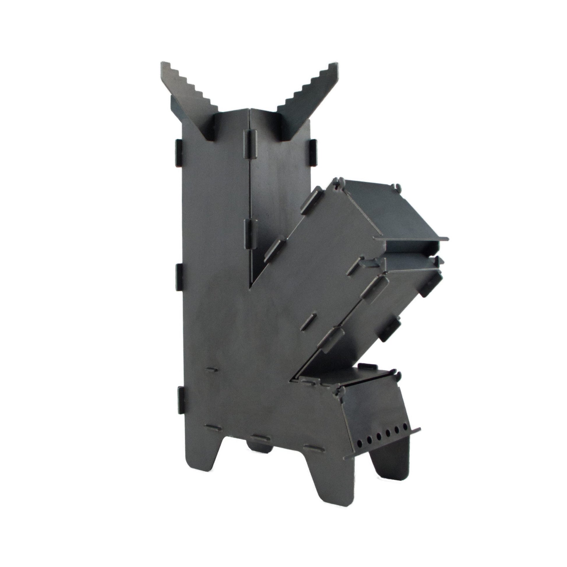 Der Raketenofen ist aus massivem, 3 mm dickem Stahl gefertigt und dadurch extrem langlebig und stabil. Dank des durchdachten Stecksystems lässt er sich einfach und schnell zerlegen und wieder zusammensetzen, was einen platzsparenden Transport beim Campieren oder Verstauen ermöglicht.