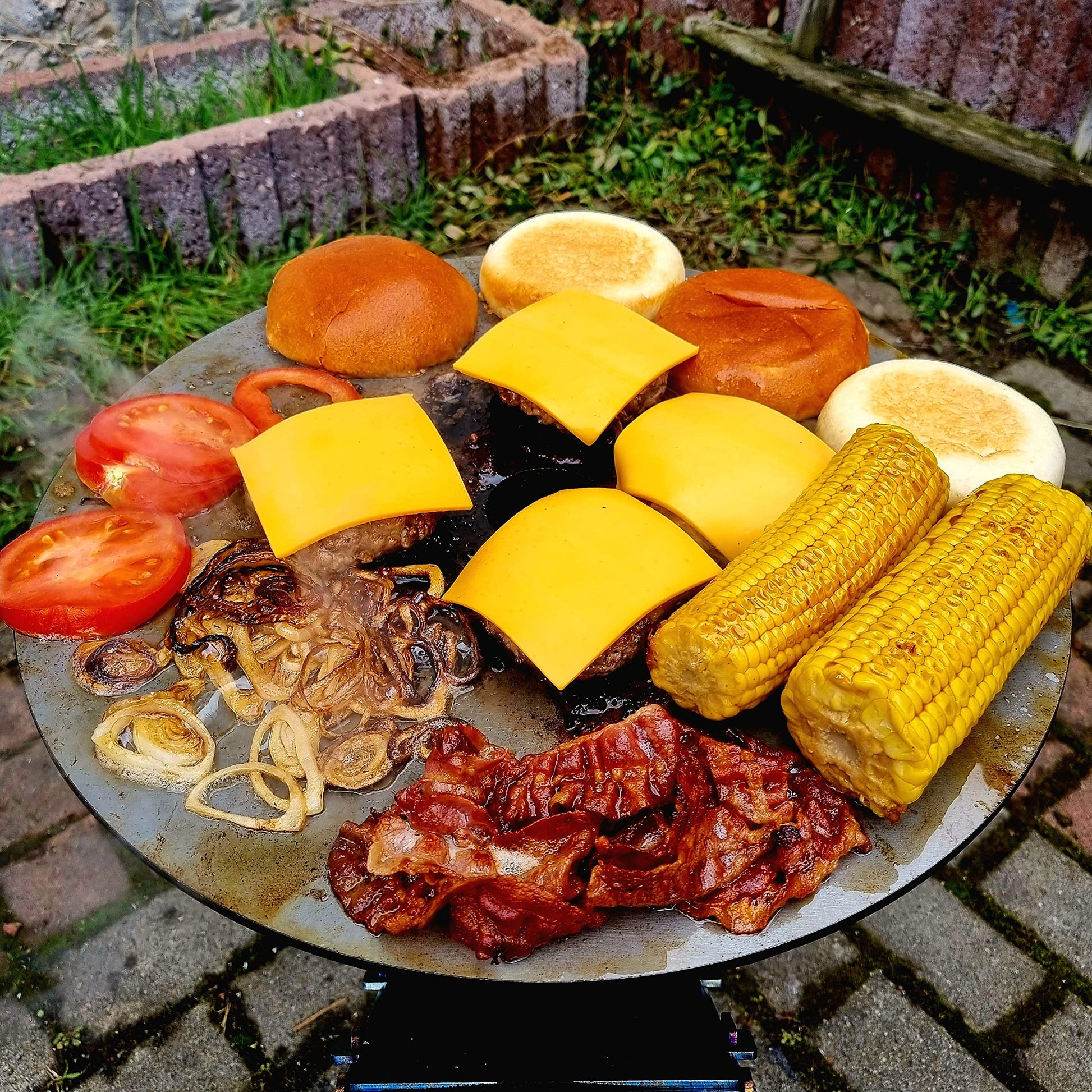 - Inklusive 5-mm-Grillplatte: Eine dicke Stahlplatte mit 50 cm Durchmesser verwandelt den Ofen in einen vollwertigen Grill für perfektes Grillgut.