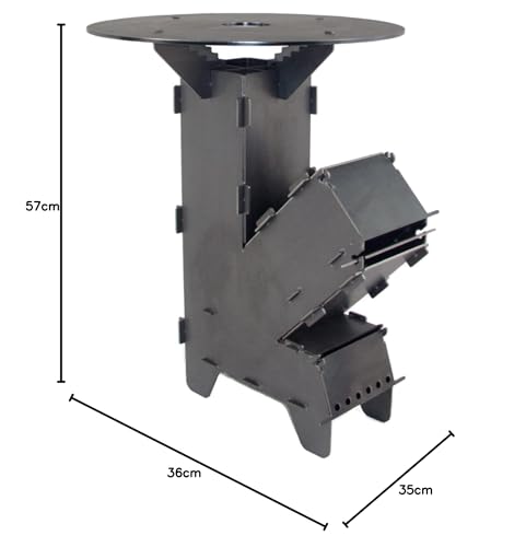 Fire World Raketenofen Campingkocher – 5mm Grillplatte, 3mm Stahl