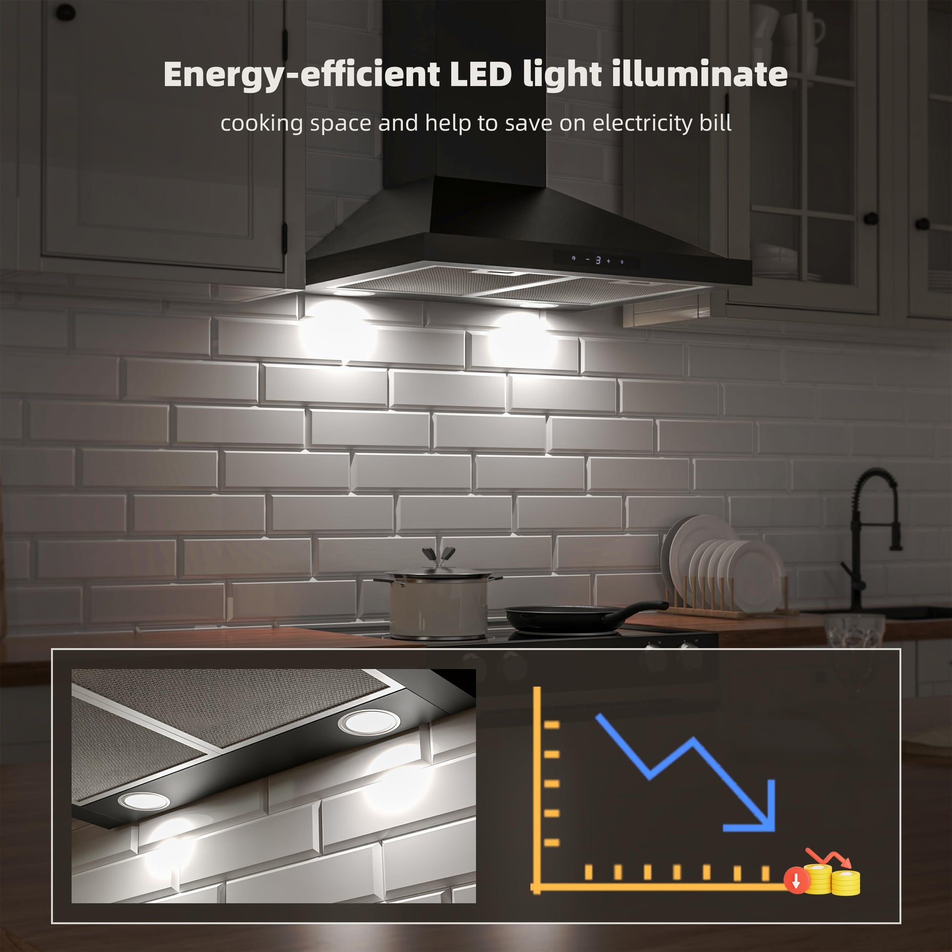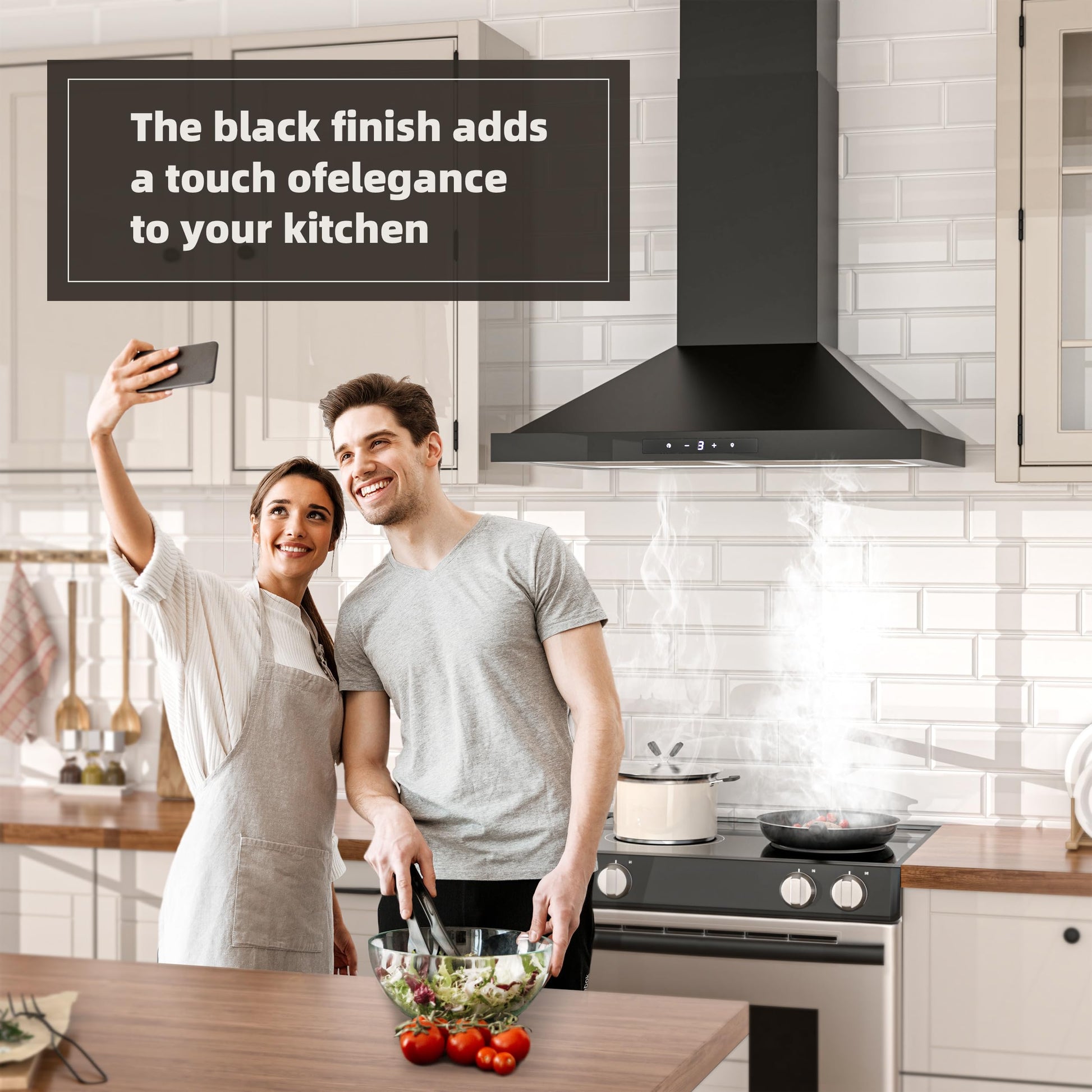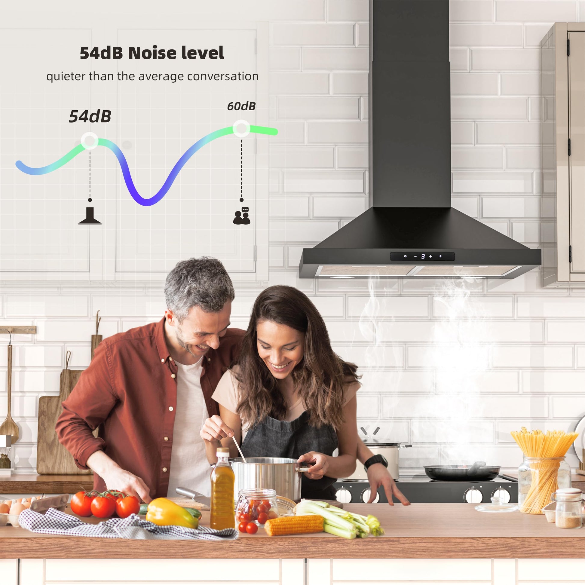 Diese elegante 60-cm-Wandhaube verbindet ein modernes Design in Schwarz mit leistungsstarker Funktionalität und sorgt so für eine jederzeit frische Küchenatmosphäre.