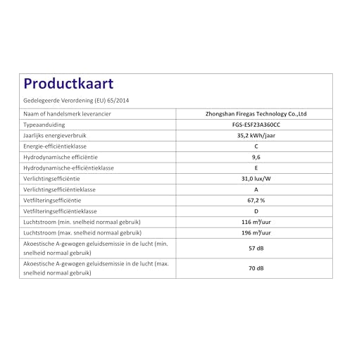 Die Haube bietet drei Leistungsstufen mit einer maximalen Absaugleistung von 201,6 m³/h im Abluftbetrieb, was für kleine bis mittelgroße Küchen ausreicht. Die maximale Lautstärke auf höchster Stufe beträgt 70 dB (A).