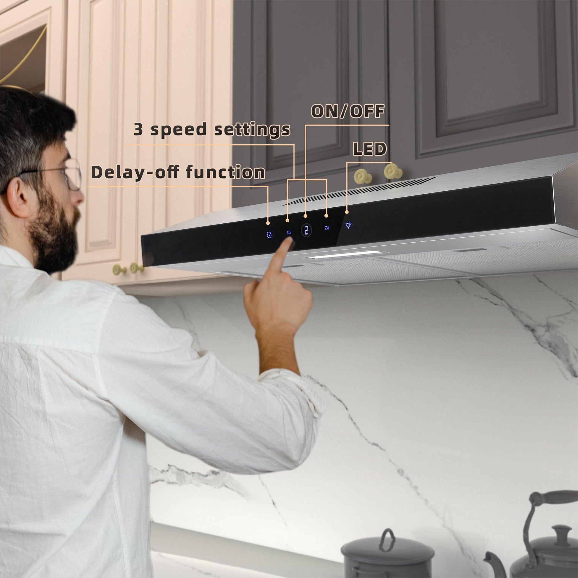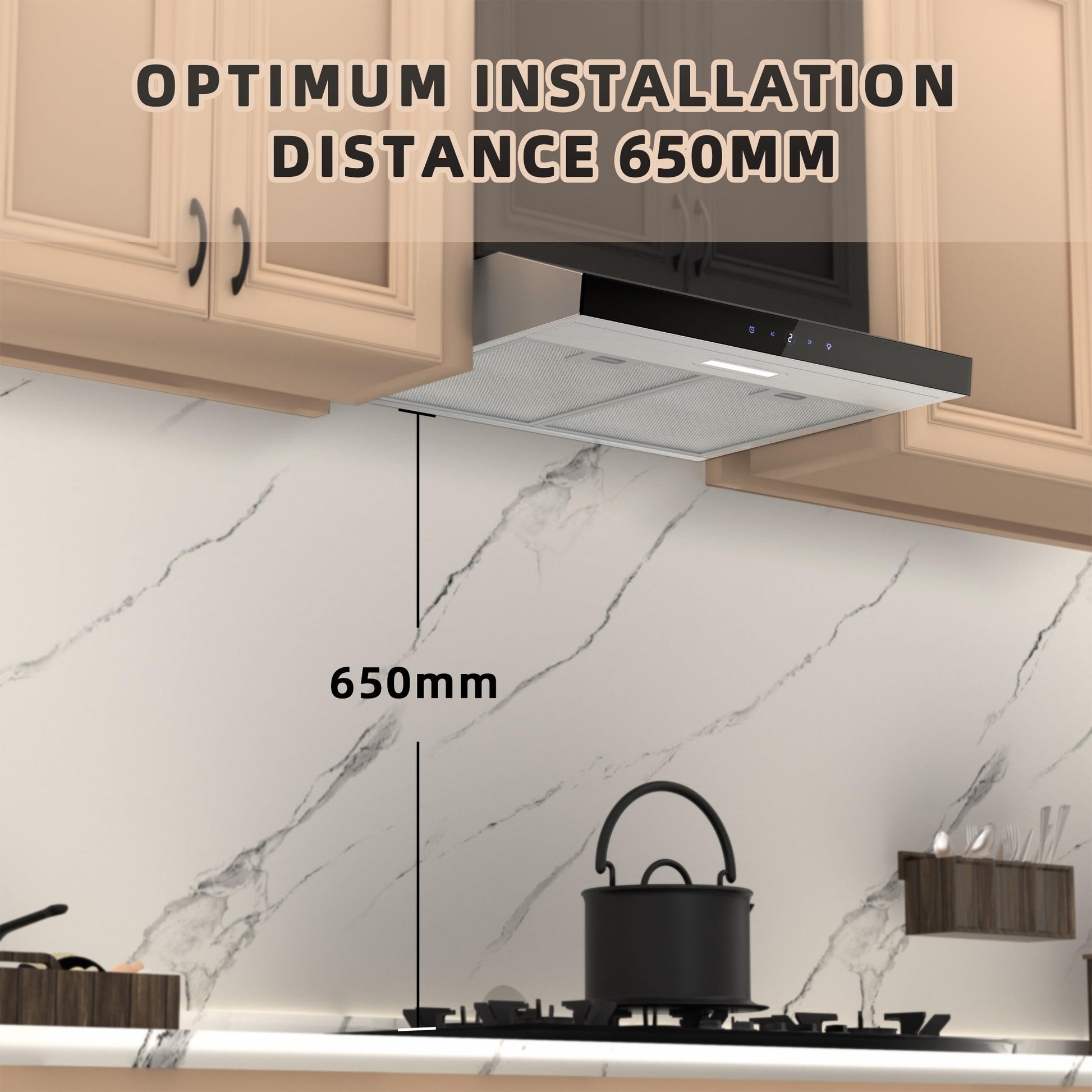 - Intuitive Touch-Steuerung: Bedienen Sie die Haube mühelos über ein modernes Touchscreen-Panel mit drei Geschwindigkeitsstufen und einer praktischen Nachlauffunktion (1 bis 9 Minuten).
