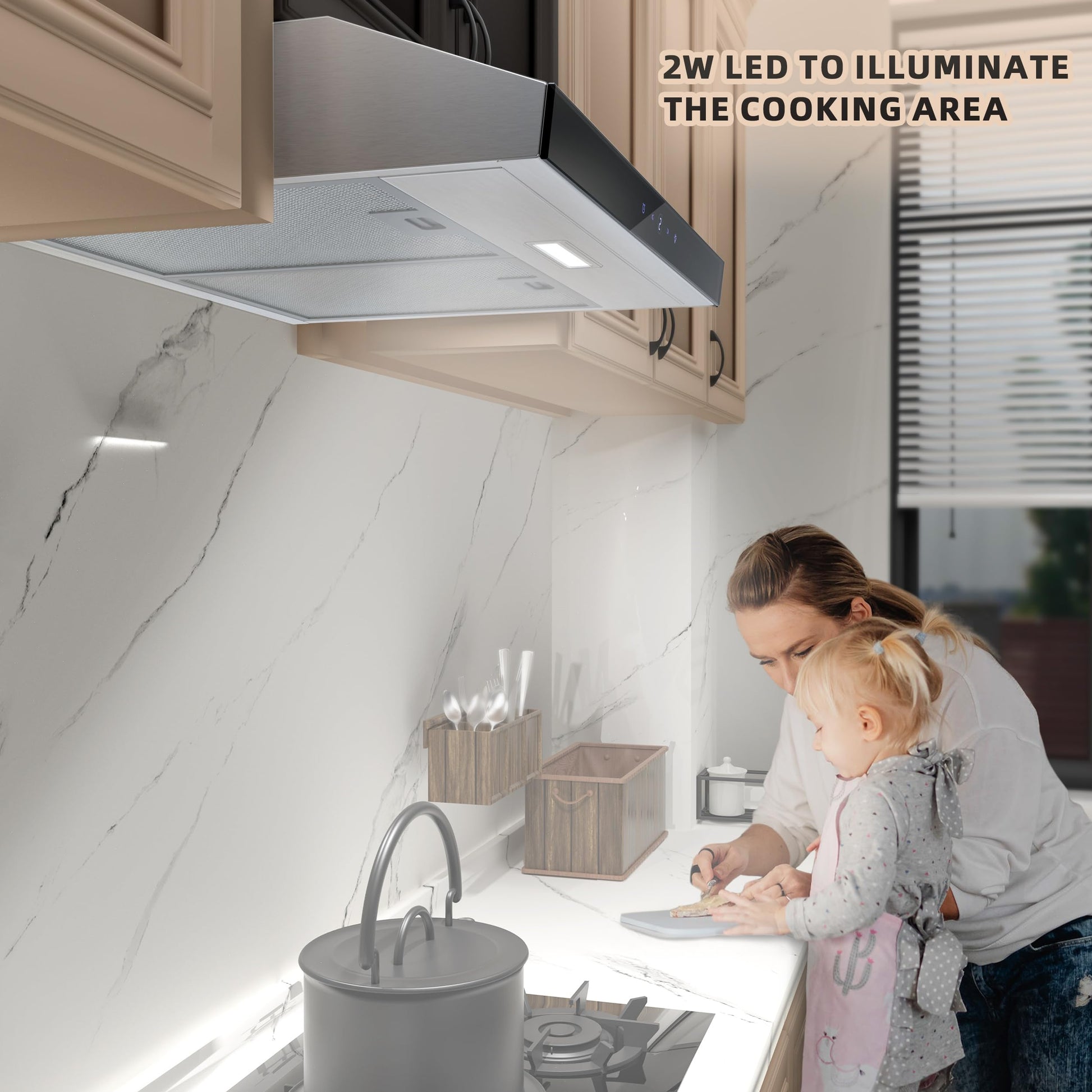 - Wiederverwendbare Filter: Zwei mehrschichtige Aluminium-Fettfilter fangen Kochdünste effektiv auf und lassen sich zur Reinigung einfach entnehmen.