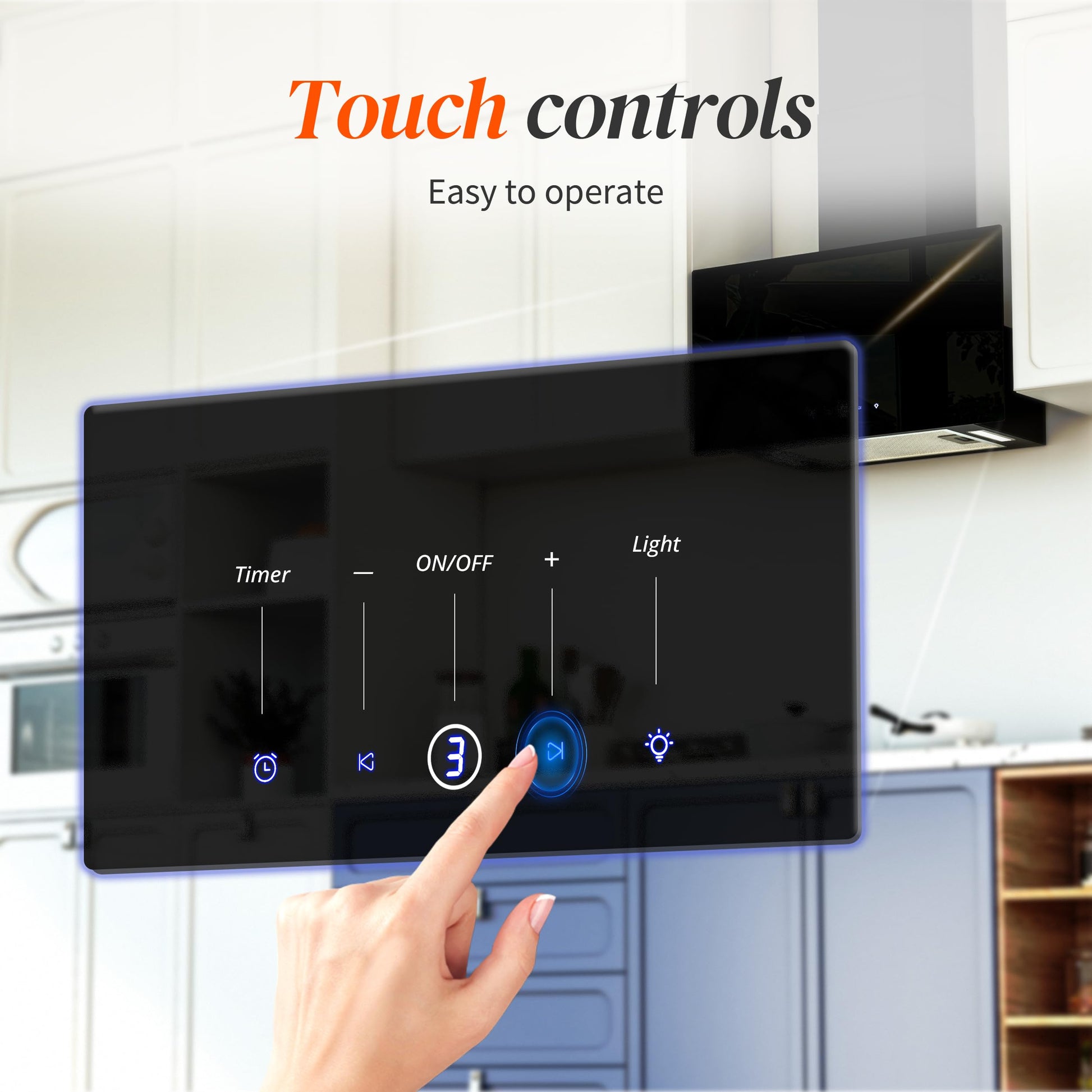 Die Bedienung erfolgt über ein elegantes und intuitives Touch-Bedienfeld, auf dem Sie aus drei Geschwindigkeitsstufen wählen können. Die glatten Oberflächen aus schwarzem Sicherheitsglas und Edelstahl sind sehr pflegeleicht und lassen sich einfach abwischen.