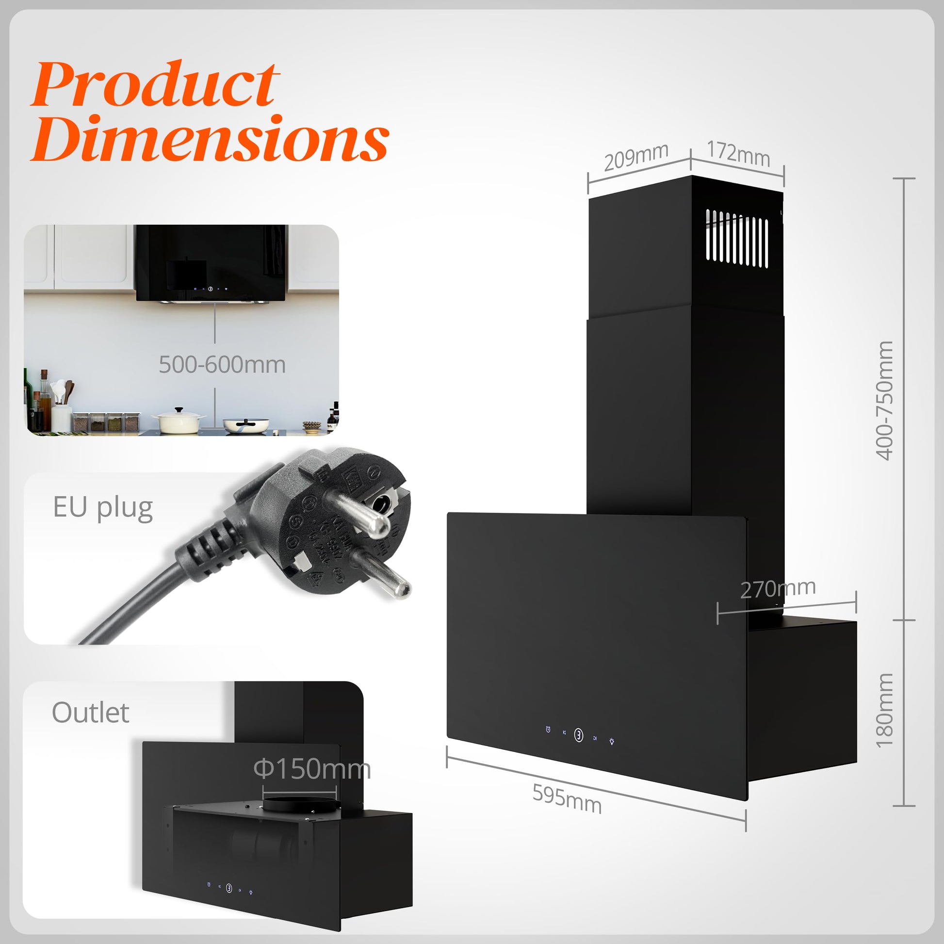 - Elegantes Design: Eine stilvolle Kombination aus schwarzem Sicherheitsglas und hochwertigem Edelstahl fügt sich nahtlos in jede moderne Küchengestaltung ein.