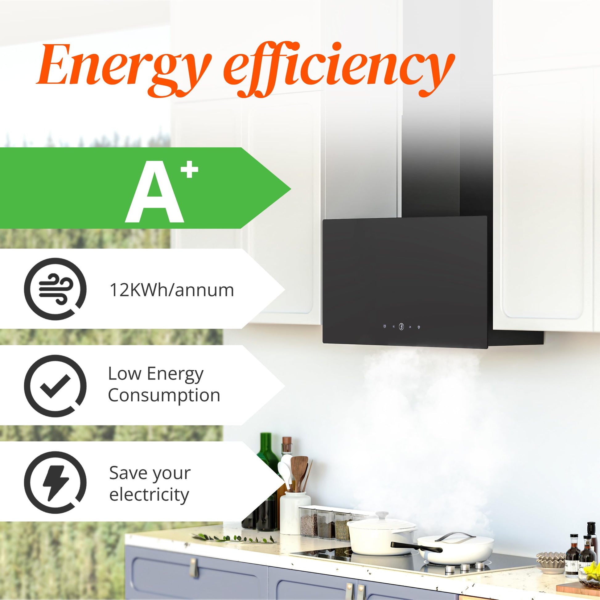 Der innovative, bürstenlose Motor ist das Herzstück dieser Dunstabzugshaube. Er sorgt nicht nur für eine starke und gleichzeitig leise Absaugung von Kochdünsten, sondern arbeitet auch ausserordentlich energieeffizient. Mit einem Jahresverbrauch von lediglich 12 kWh senken Sie Ihre Stromkosten im Vergleich zu herkömmlichen Modellen um bis zu 65 %.