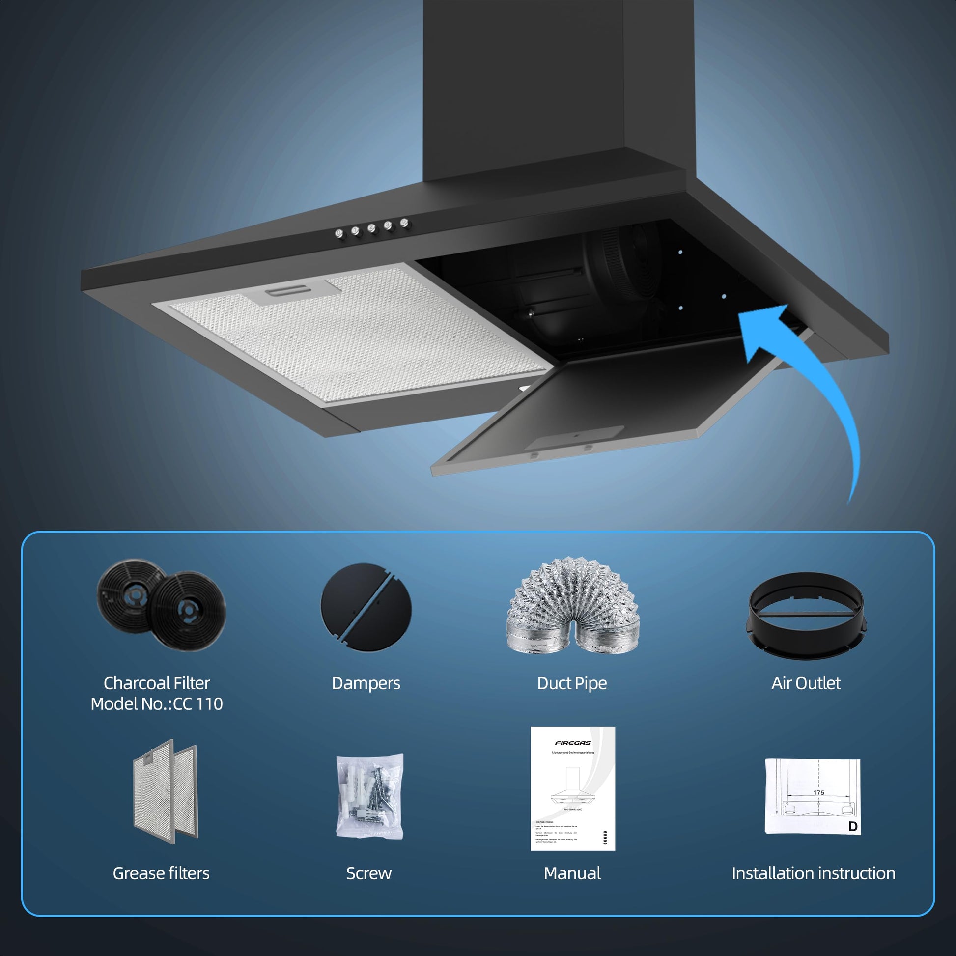FIREGAS Dunstabzugshaube Wandmontage Pyramide 60cm - Schwarz