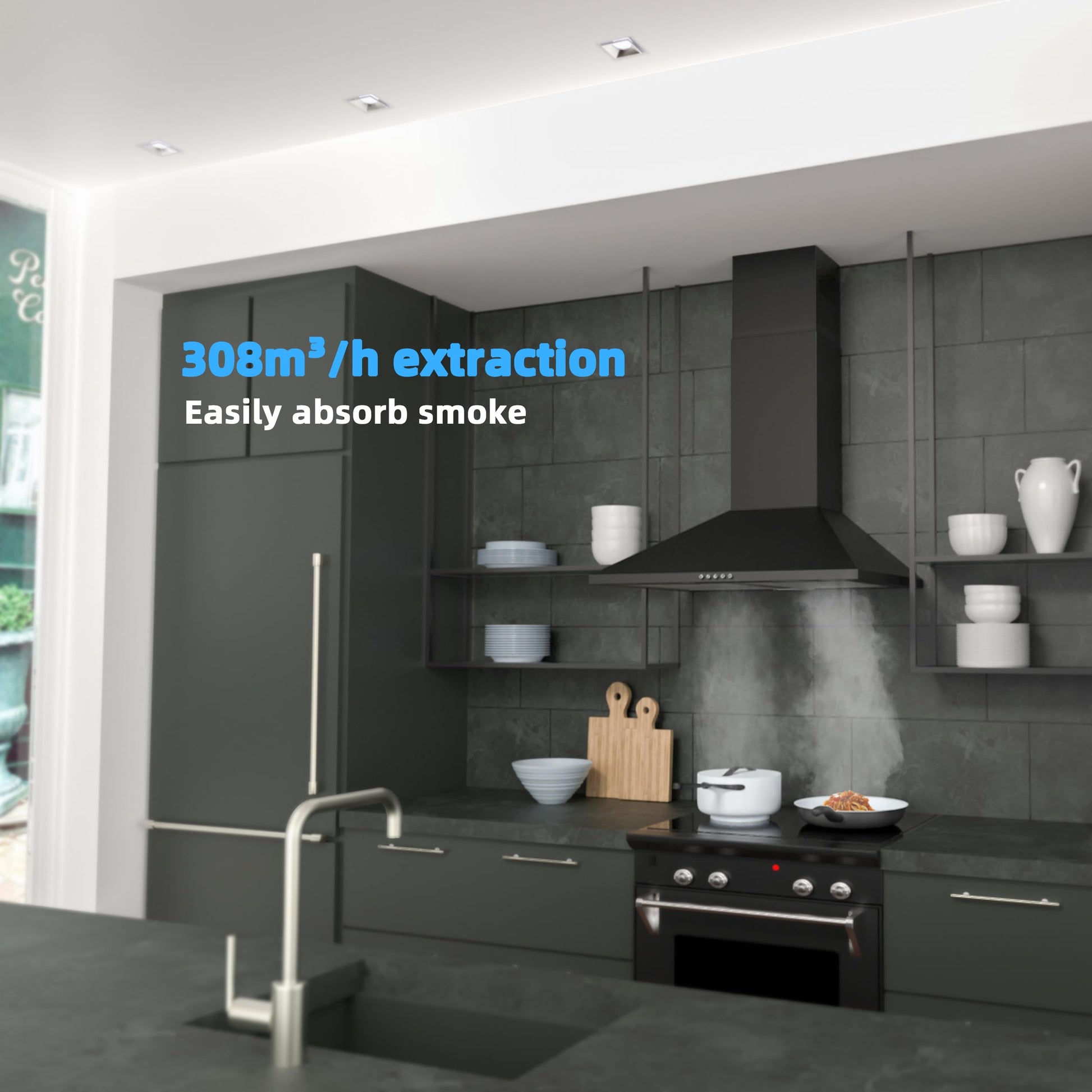 Mit einer beeindruckenden Luftförderleistung von 308 Kubikmetern pro Stunde beseitigt diese Haube Kochdünste, Fett und Gerüche zuverlässig. Dies sorgt für eine saubere und frische Küchenatmosphäre, selbst bei intensivem Kochen.