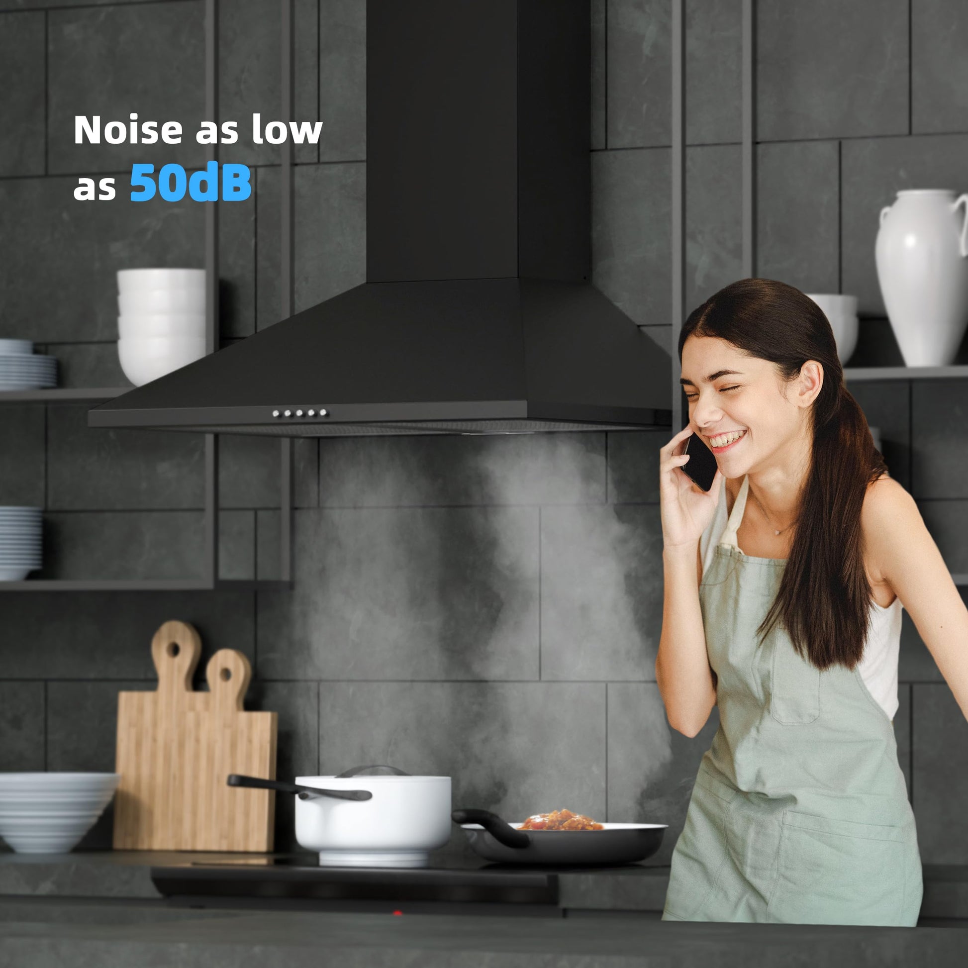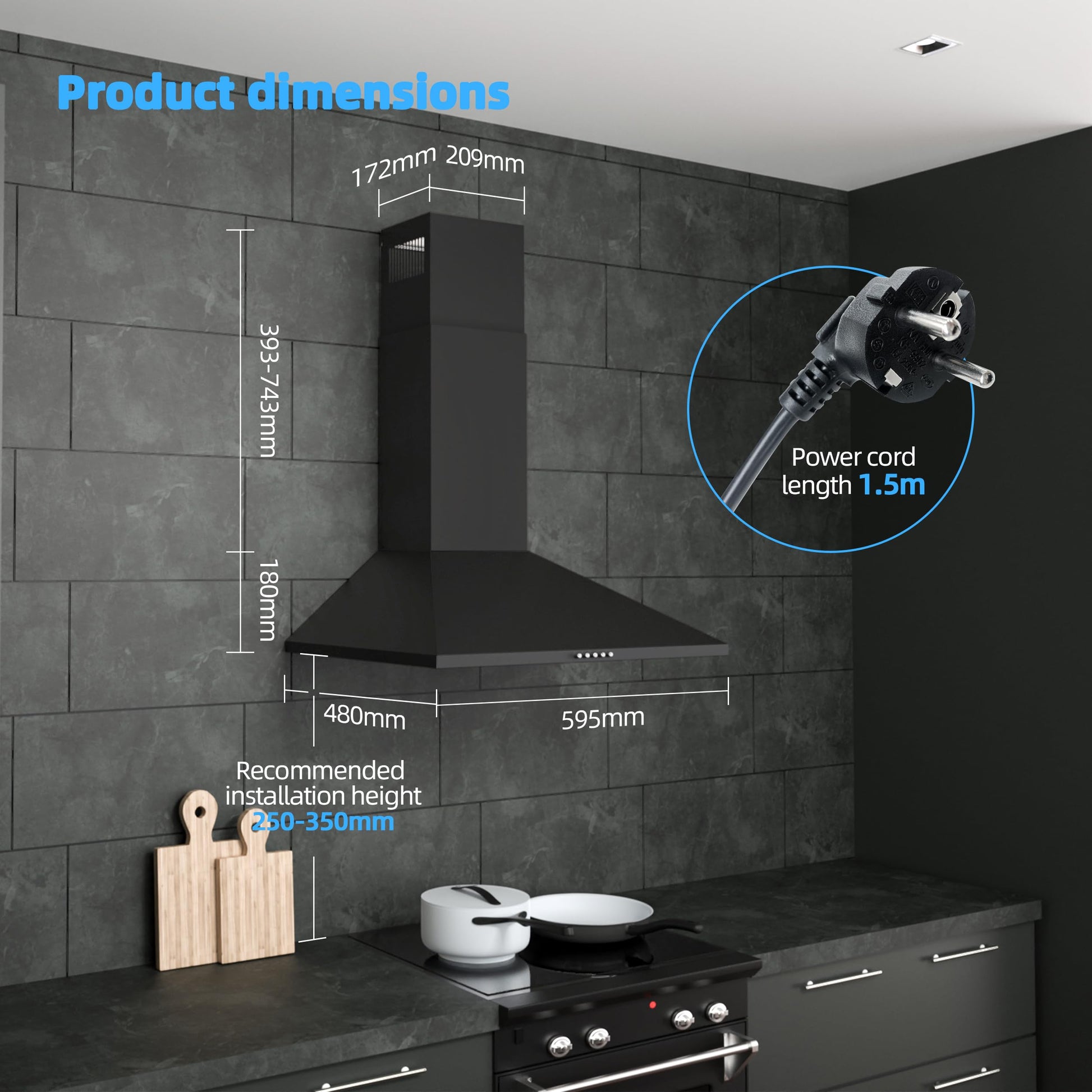 Diese stilvolle Wand-Dunstabzugshaube im eleganten Pyramiden-Design ist die ideale Ergänzung für jede moderne Küche. Sie vereint eine starke Leistung mit einem leisen Betrieb und sorgt so zuverlässig für frische Luft beim Kochen.
