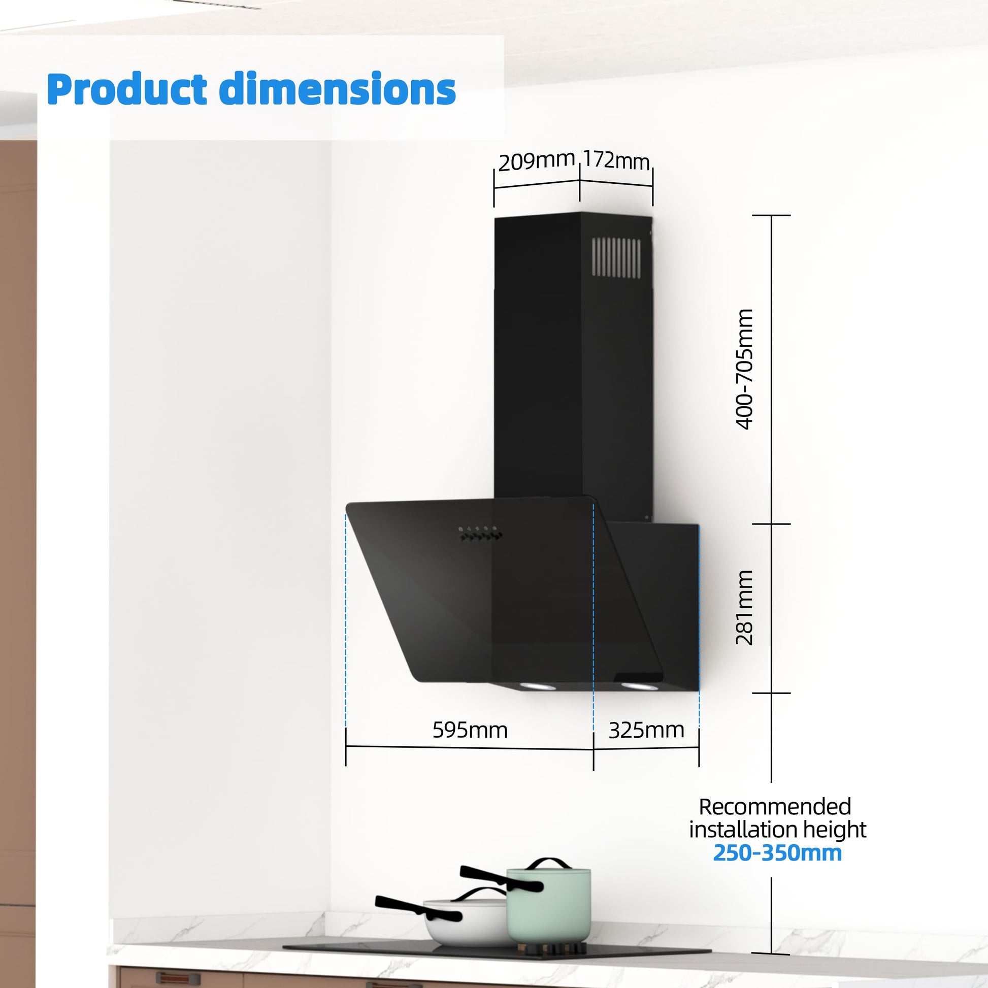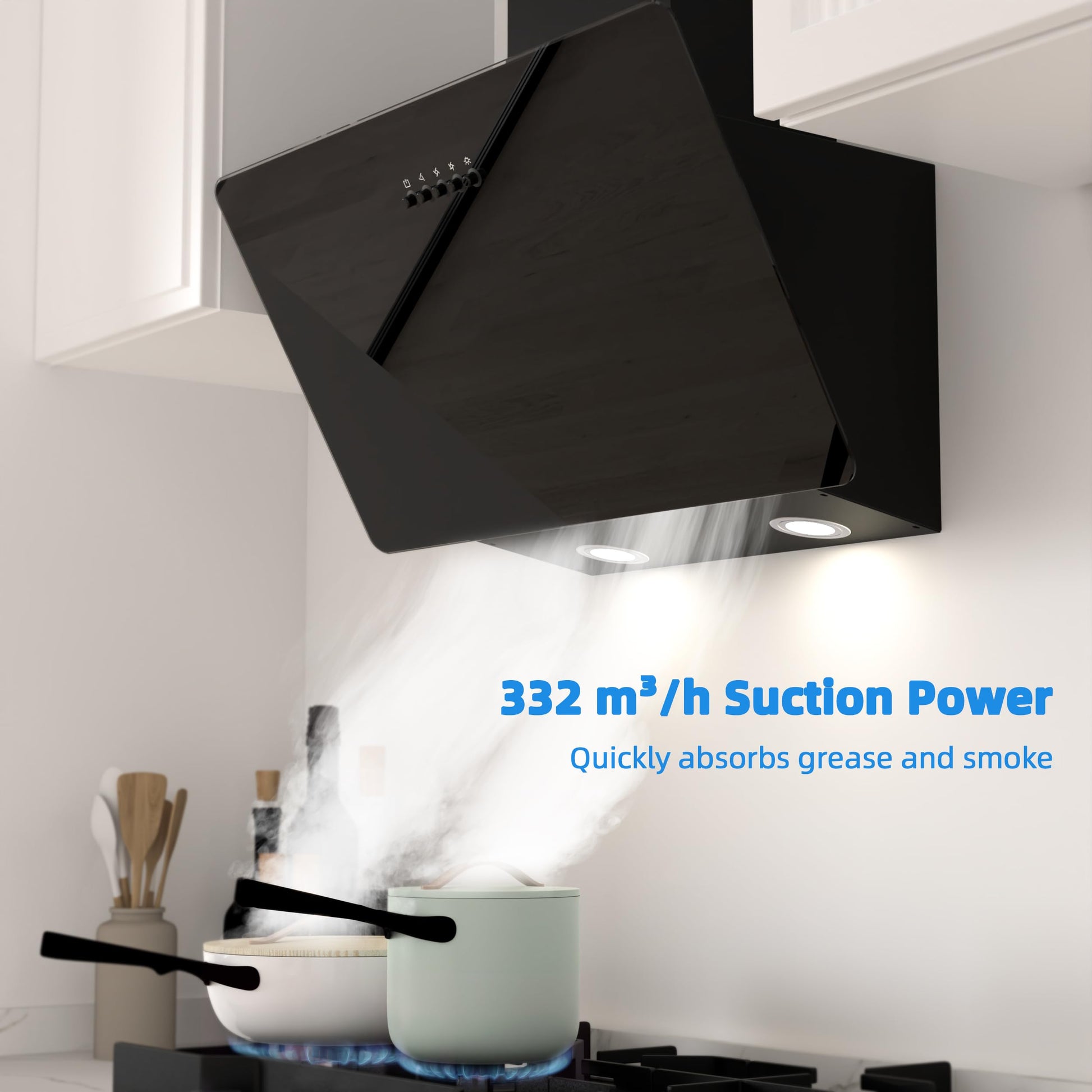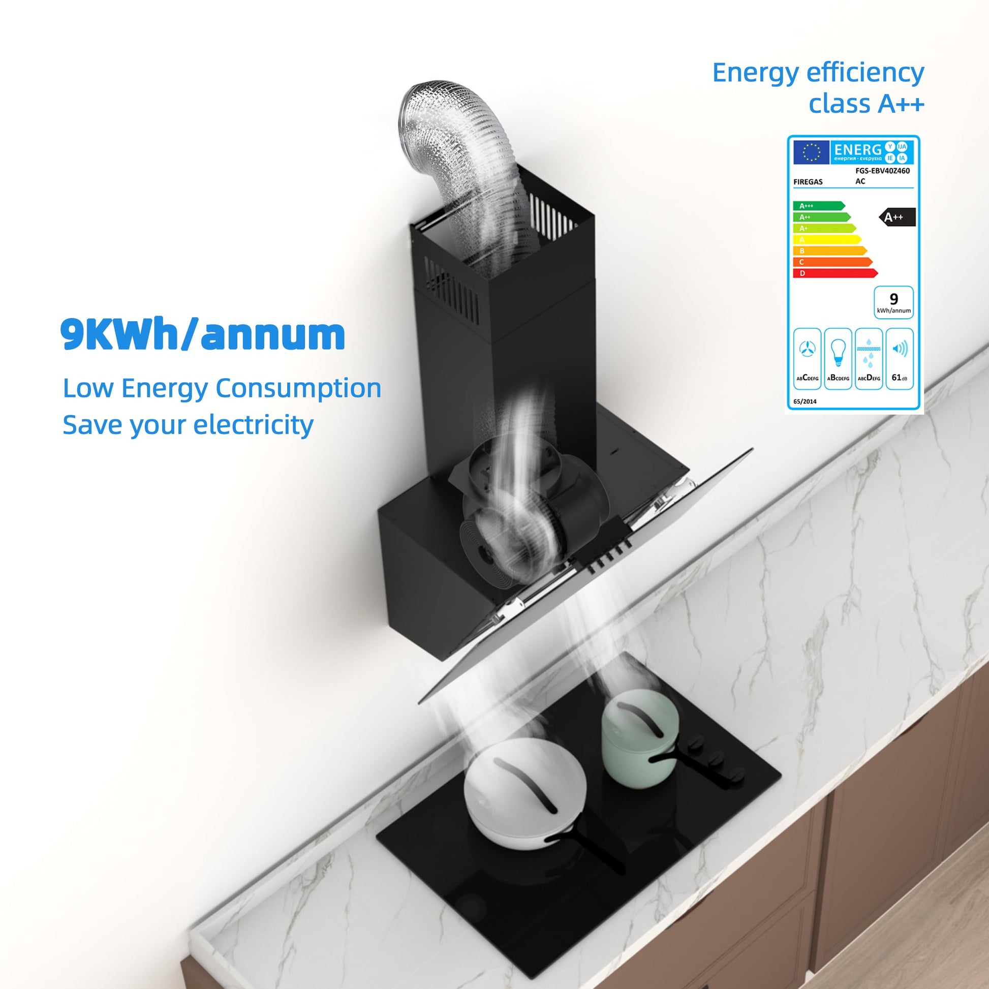 FIREGAS Dunstabzugshaube 60cm Schräghaube Abluft/Umluft - Black