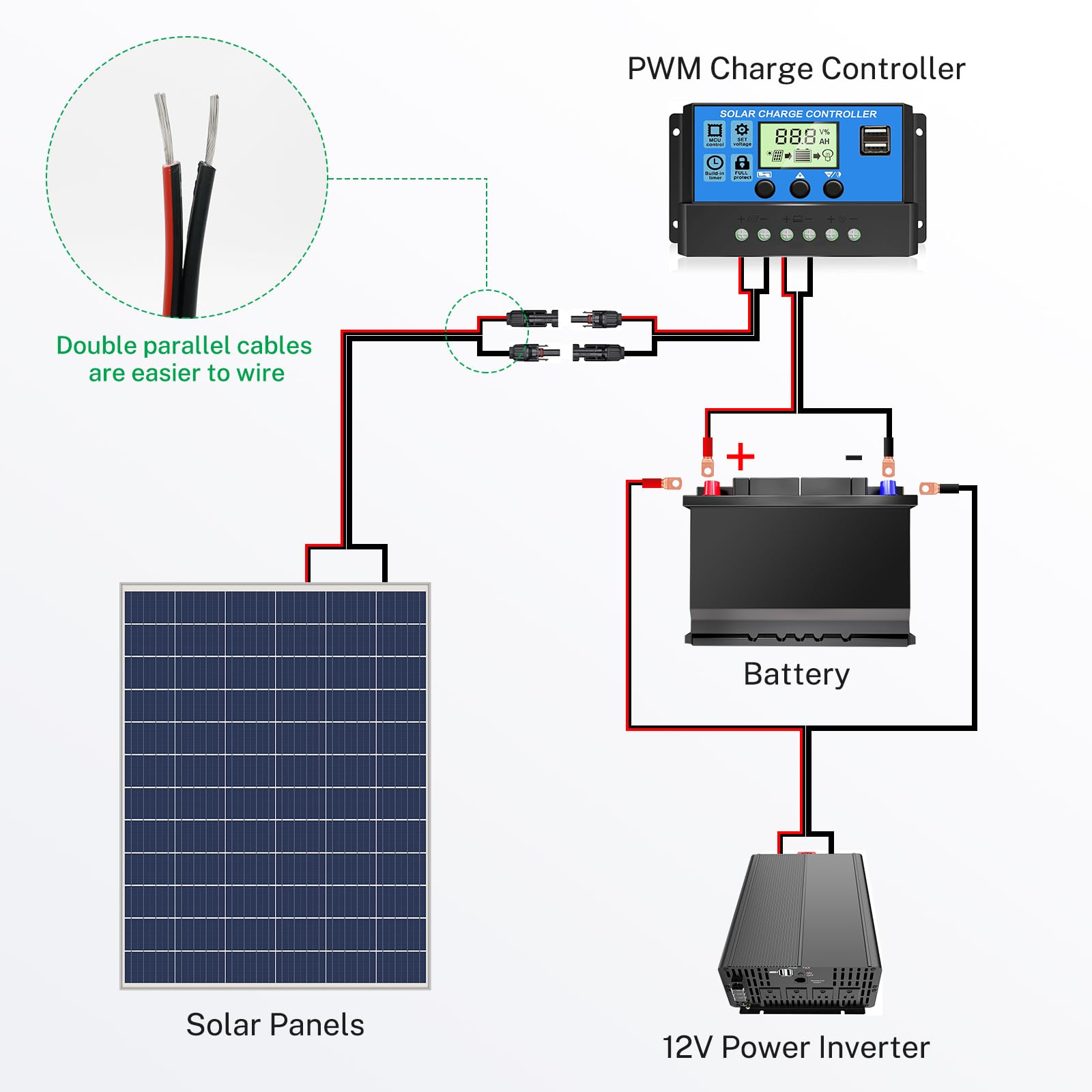 Dieses Kabel ist ideal, um die Hauptkomponenten einer Photovoltaikanlage zu verbinden. Es wird typischerweise für die Verkabelung zwischen den Solarmodulen und dem Laderegler oder Wechselrichter verwendet.