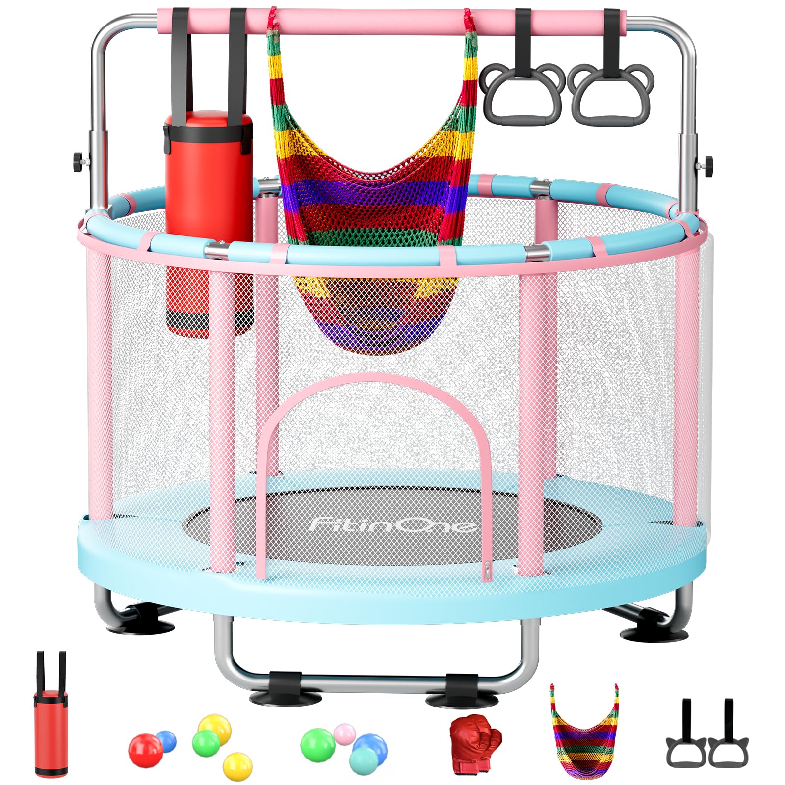 FitinOne Kindertrampolin 140cm mit Schaukel & Turnstange