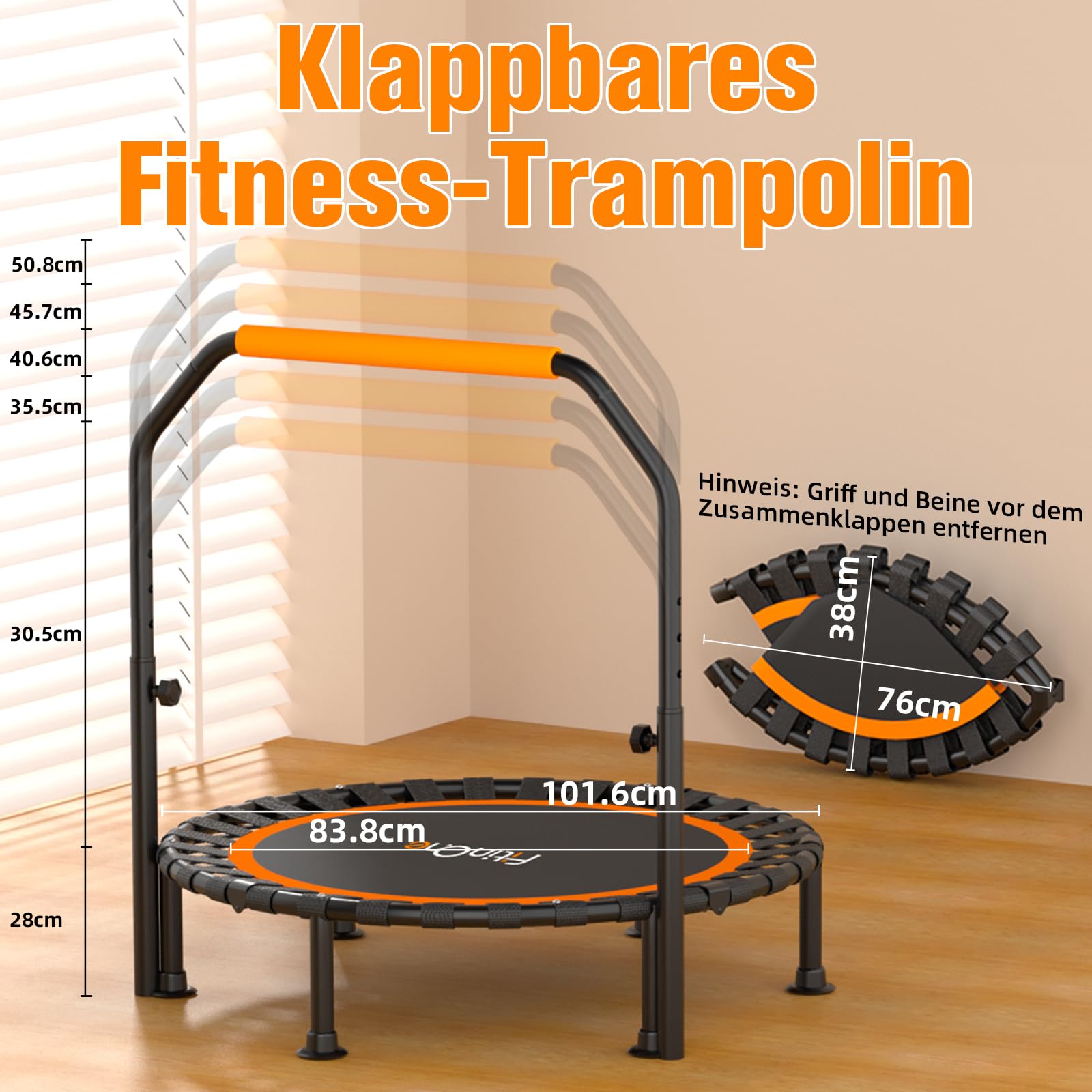 Erleben Sie ein gelenkschonendes und effektives Ganzkörpertraining in den eigenen vier Wänden mit diesem faltbaren Fitness-Trampolin, das für Kinder und Erwachsene gleichermassen geeignet ist.