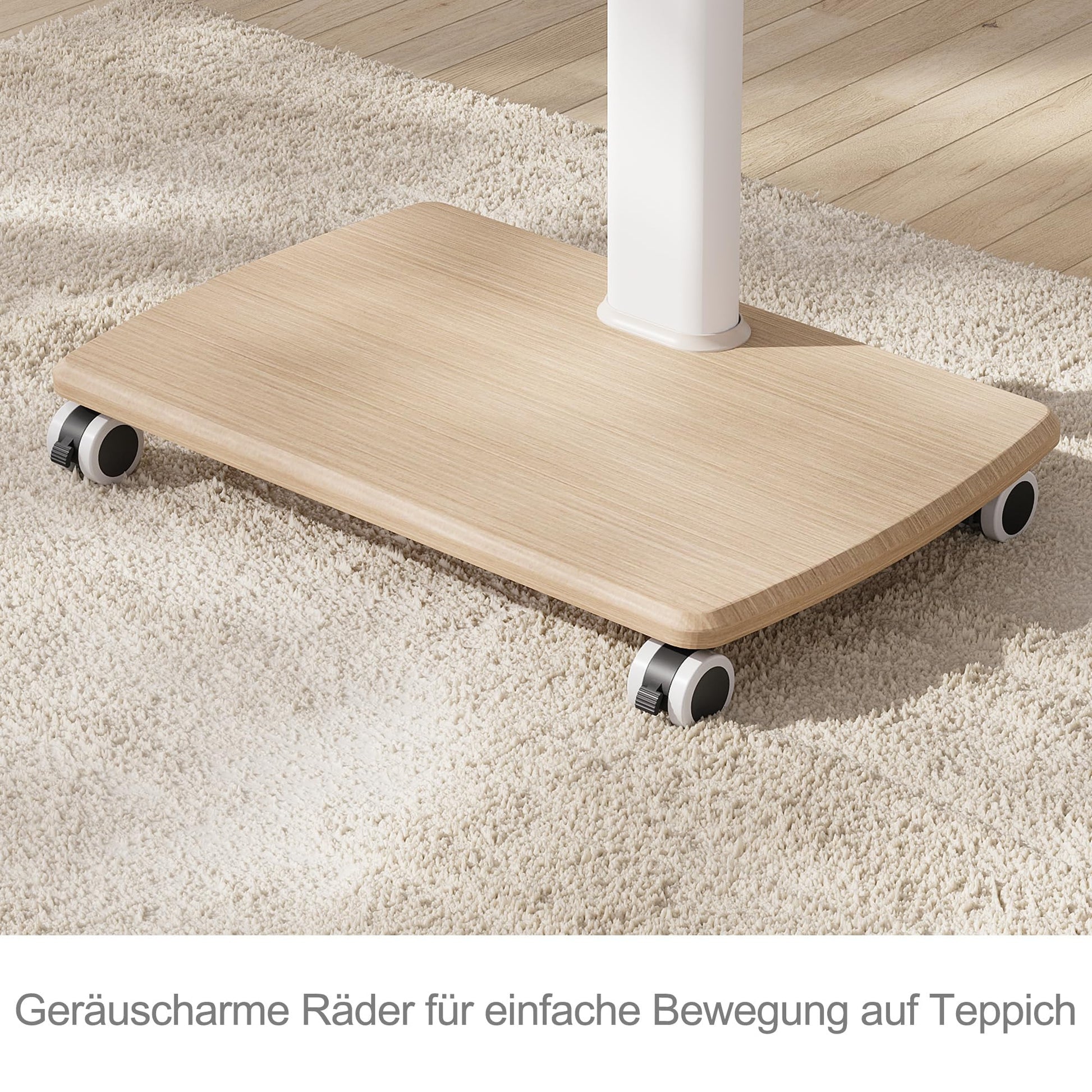 - Mobil und Stabil: Dank der integrierten Rollen lässt sich der Ständer mühelos verschieben. Die 20 mm starke Holzbasis sorgt für einen sicheren und dauerhaften Halt.