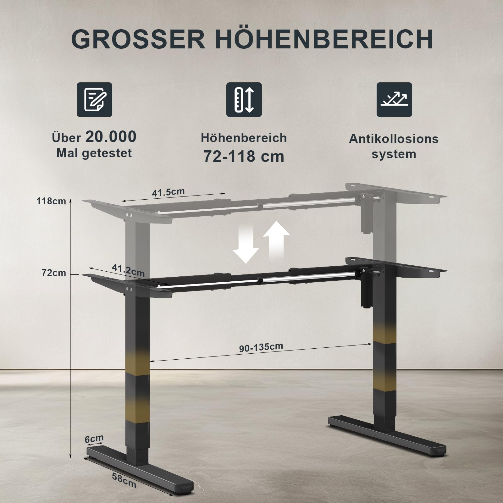 Dieses elektrisch verstellbare Tischgestell ist die perfekte Grundlage für einen modernen und ergonomischen Arbeitsplatz. Es ermöglicht Ihnen, Ihre Arbeitsposition flexibel zu gestalten und so Ihr Wohlbefinden und Ihre Produktivität zu steigern.