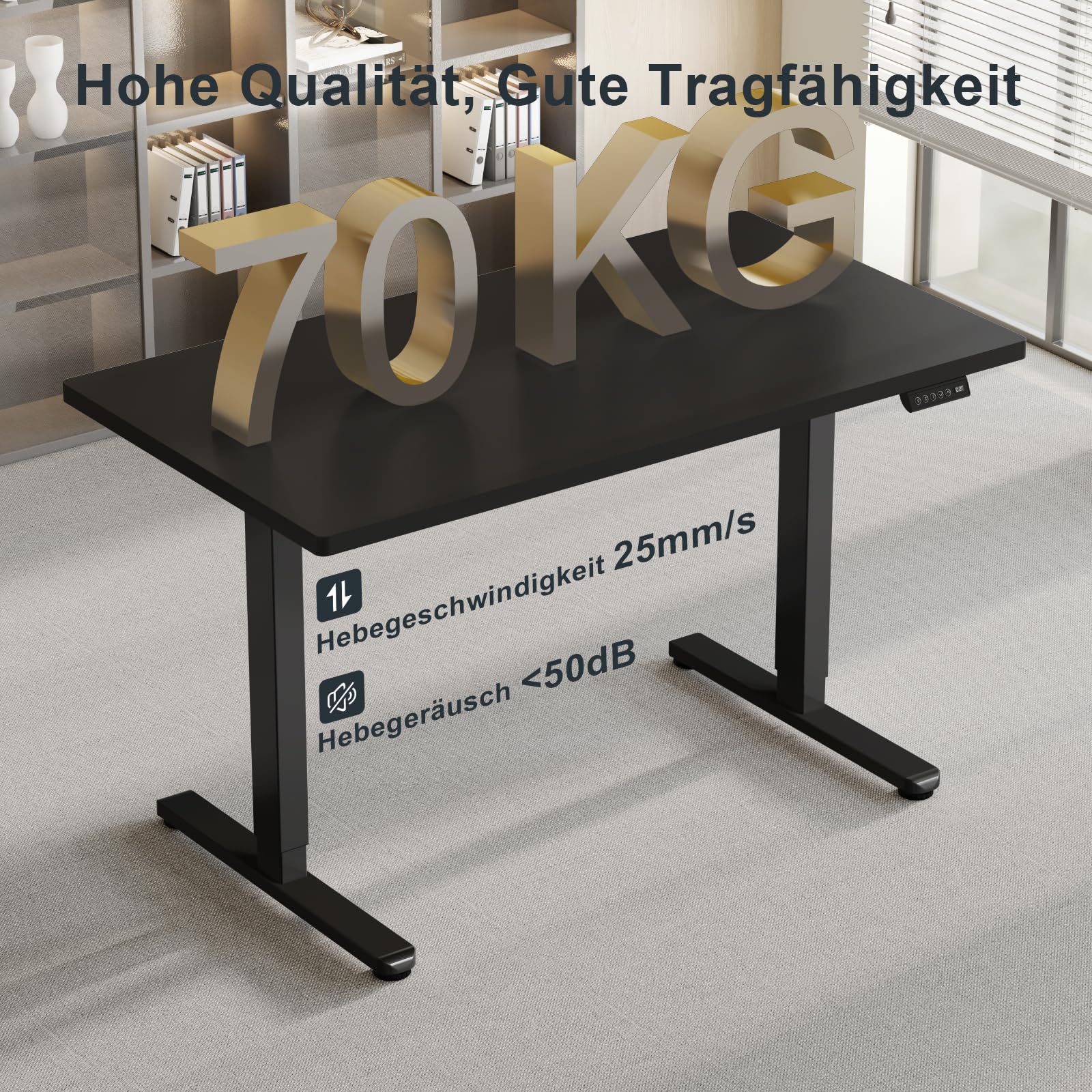 Das Tischgestell hat eine maximale Tragkraft von 70 kg. Es wird mit einer 5-jährigen Garantie auf das Gestell und einer 3-jährigen Garantie auf den Motor geliefert, was seine Langlebigkeit unterstreicht.
