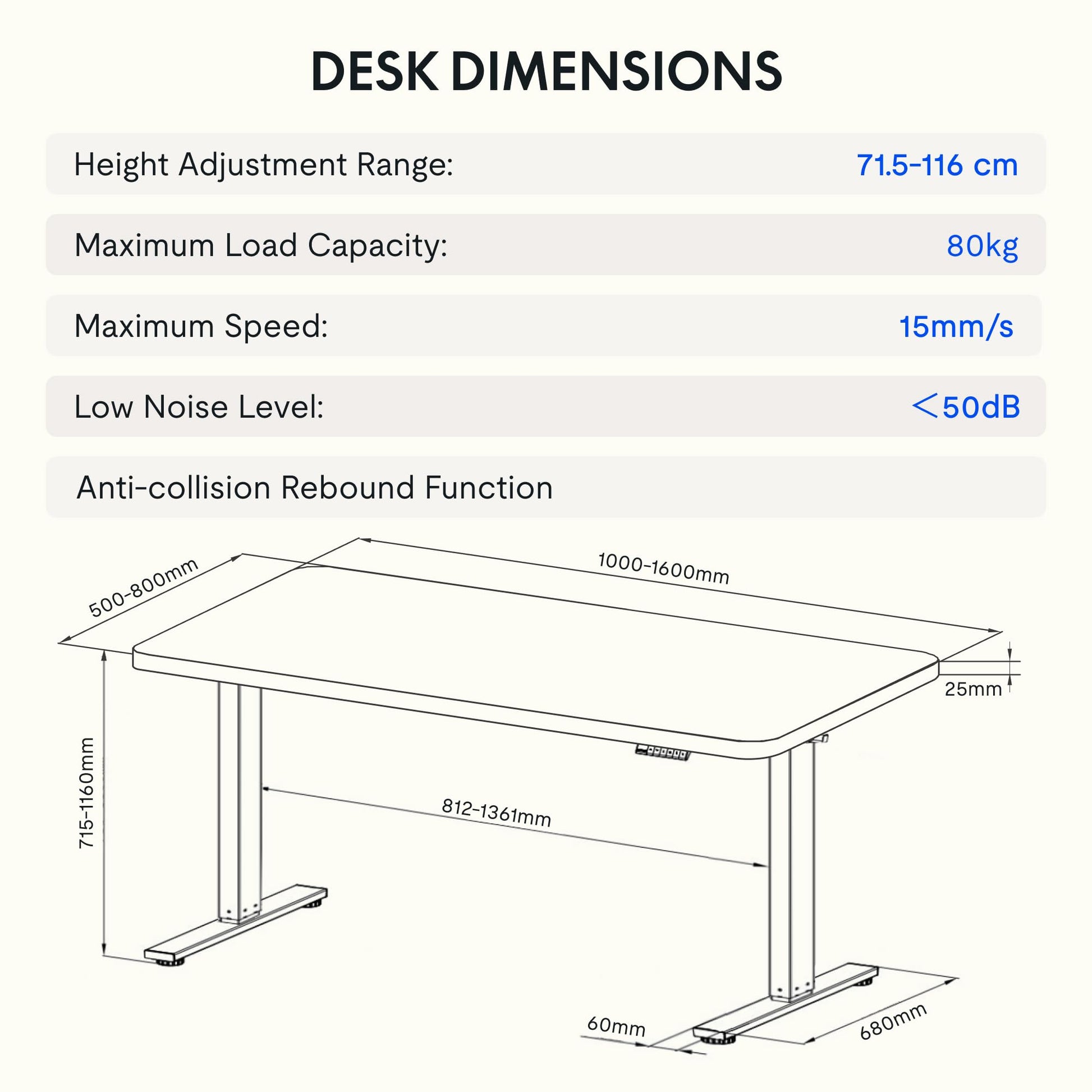- Flexibler Höhenbereich: Elektrisch verstellbar von 71.5 cm bis 116 cm, ideal für unterschiedliche Körpergrössen und Tätigkeiten.