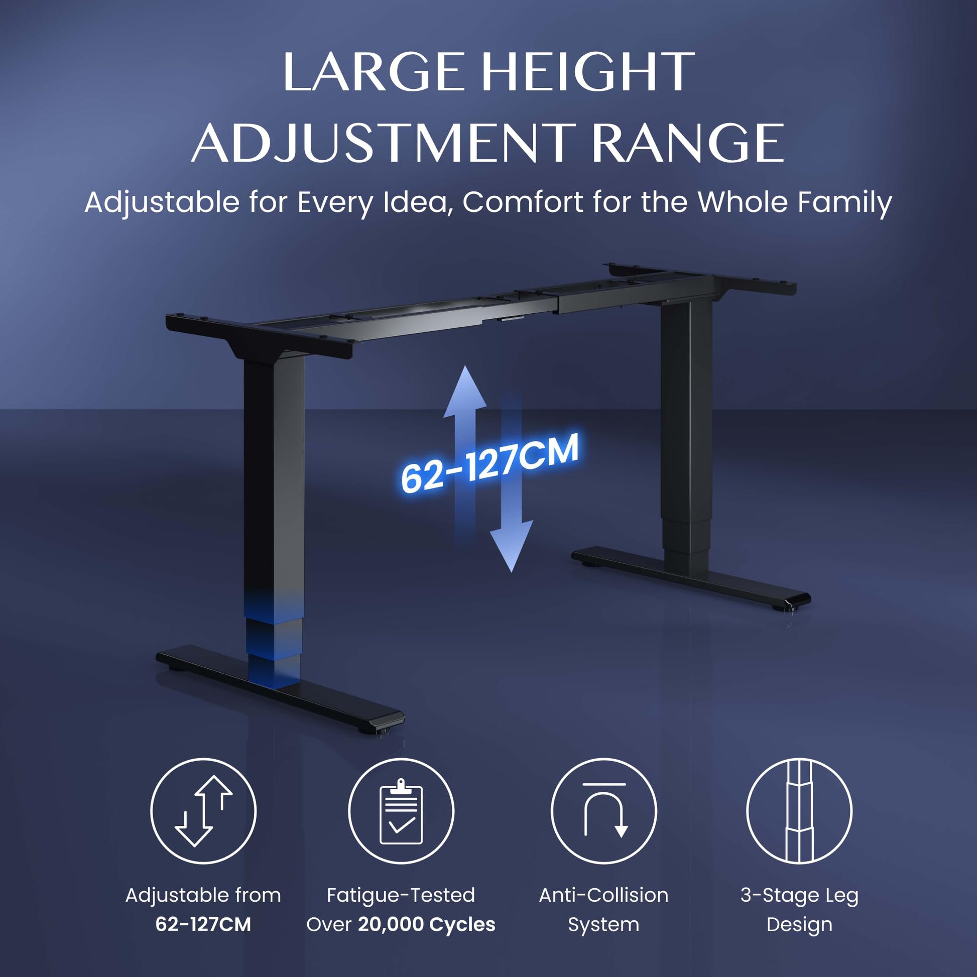 - Grosser Verstellbereich: Dank der 3-stufigen Teleskopbeine lässt sich die Höhe stufenlos von 62 cm bis 127 cm einstellen, ideal für Personen jeder Körpergrösse und auch als mitwachsender Kinderschreibtisch geeignet.