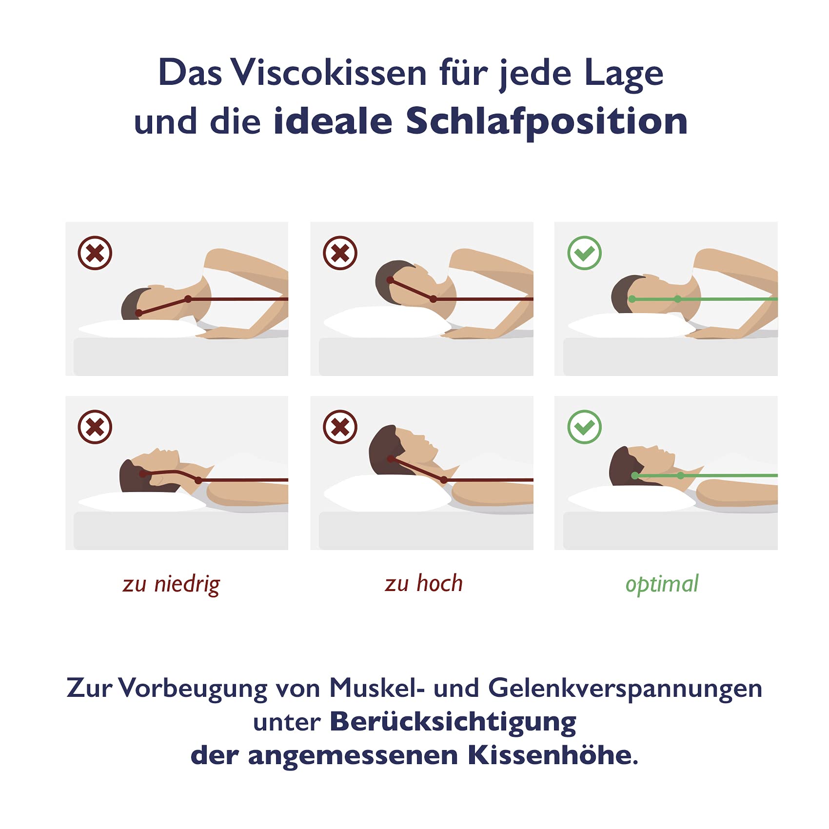- Viscoelastischer Memory-Schaum: Das Kissen besteht aus thermoelastischem Visco-Schaum, der durch Körperwärme reagiert und sich perfekt an die individuellen Konturen von Kopf und Nacken anpasst.