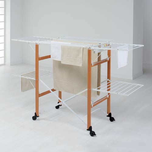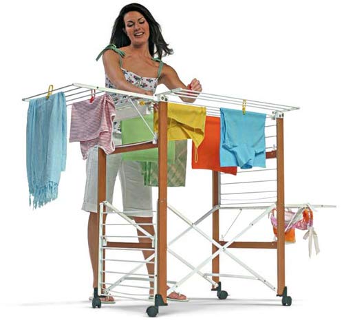 Wenn er nicht gebraucht wird, entfaltet der Wäscheständer sein grösstes Talent: Er lässt sich komplett zusammenklappen, steht von alleine und benötigt mit einer Tiefe von nur 14 cm kaum Platz. So findet er in jeder Nische oder hinter einer Türe problemlos Platz.