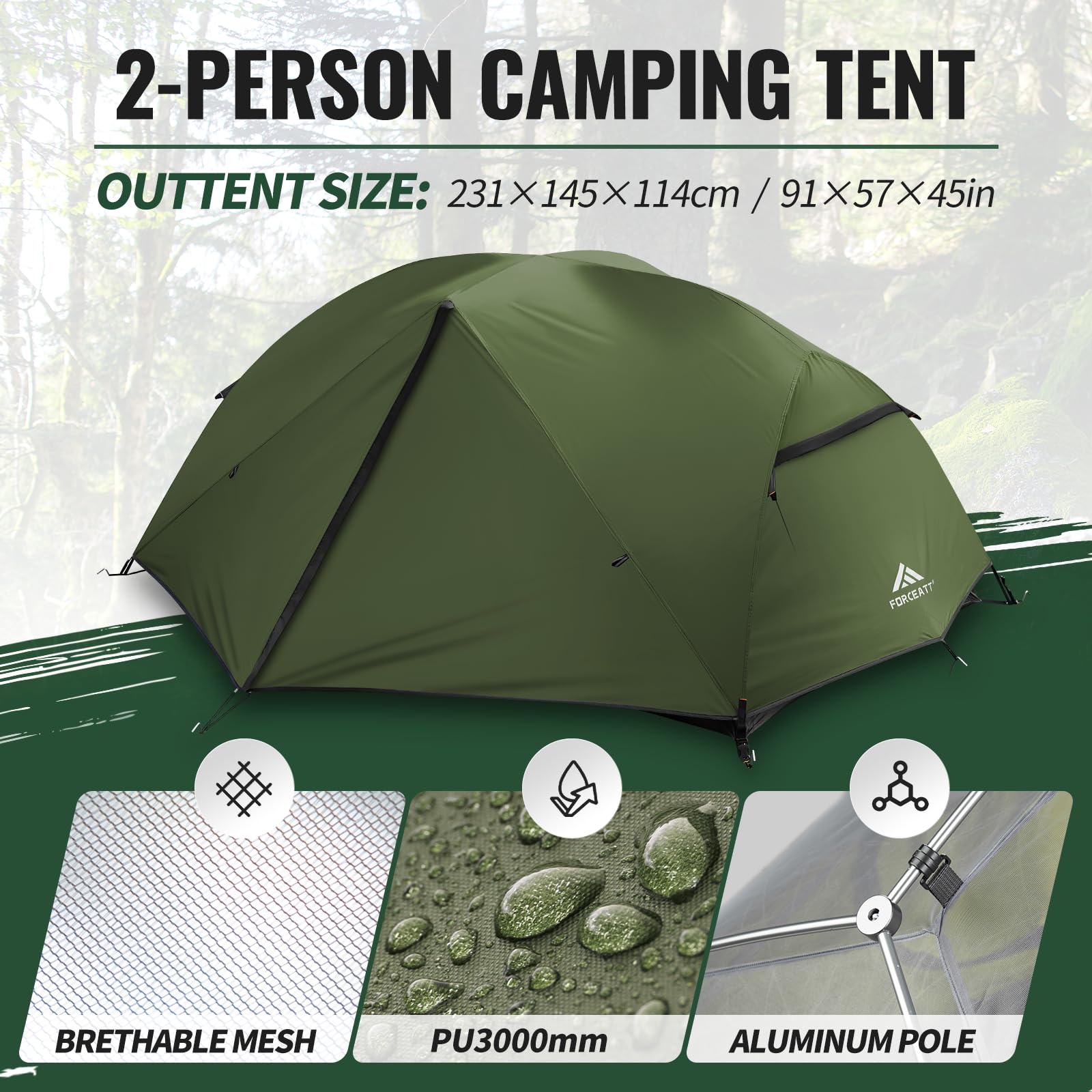 Forceatt Zelt 2P Ultraleicht Campingzelt 3-4 Saison - Dunkelgrün