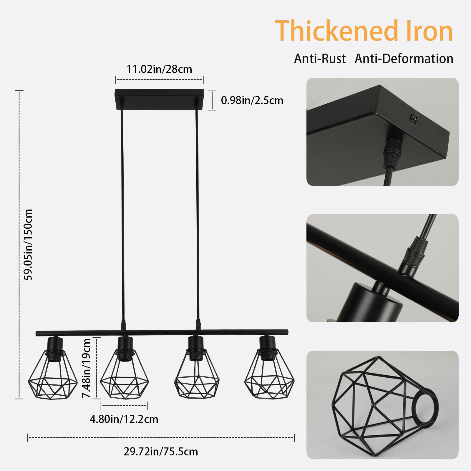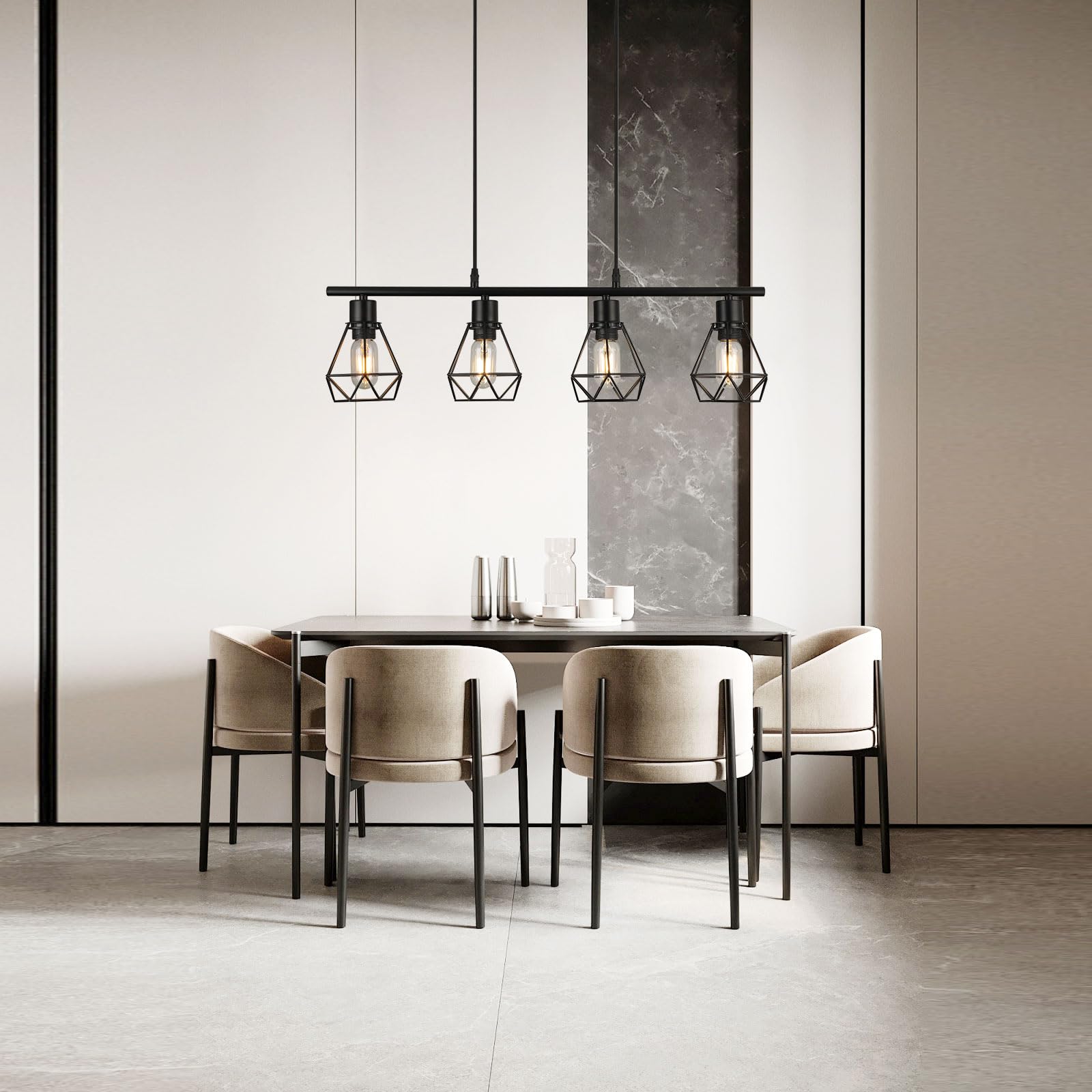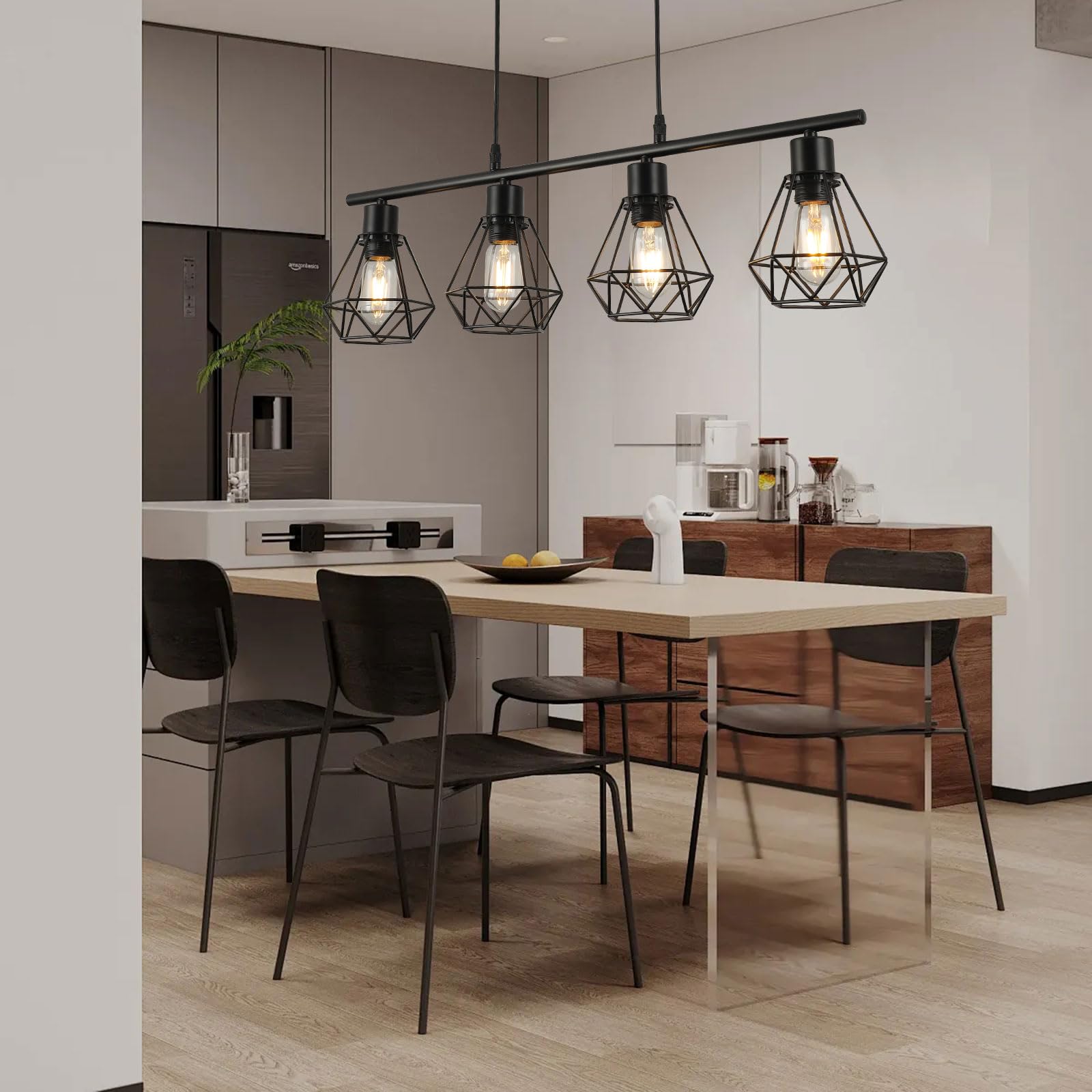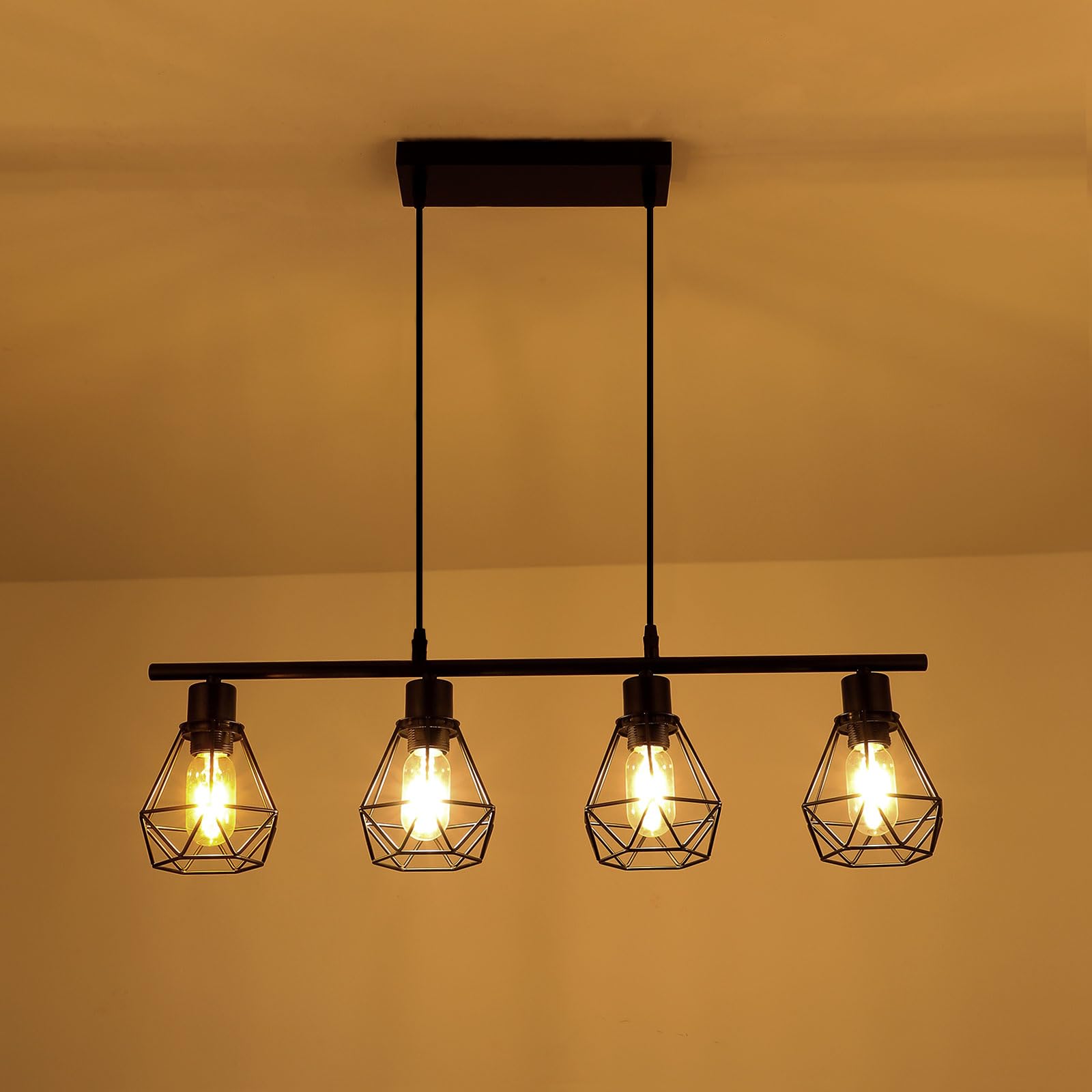 FORCOSO Pendelleuchte Esstisch 4 Flammig – Schwarz Vintage