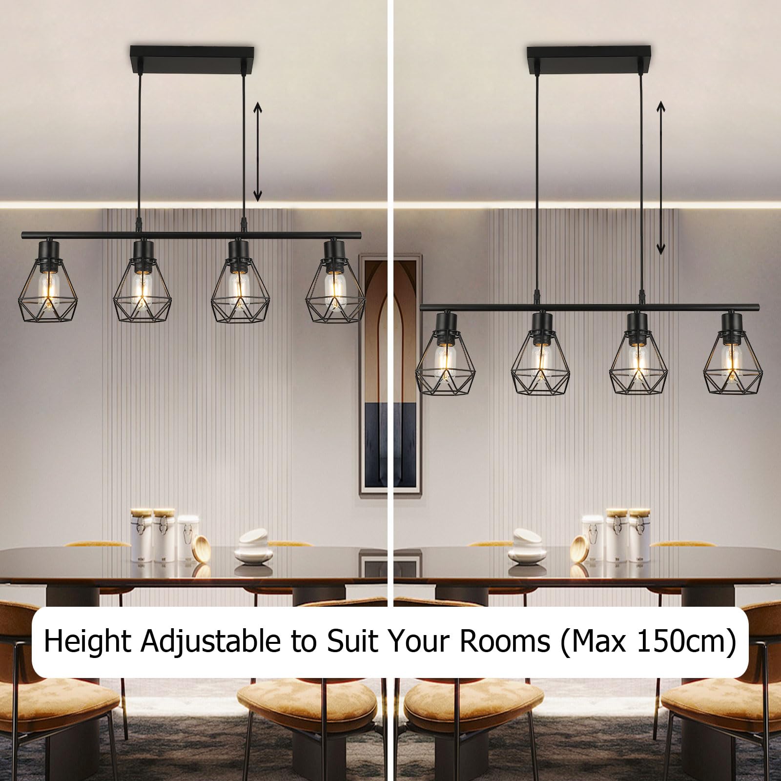 Individuell anpassbare Höhe: Mit einer Kabellänge von bis zu 150 cm können Sie die Höhe der vier Pendel flexibel einstellen. So passt sich die Lampe perfekt an unterschiedliche Raumhöhen und Gegebenheiten an, sei es über dem Esstisch, der Kücheninsel oder einem Bartresen.