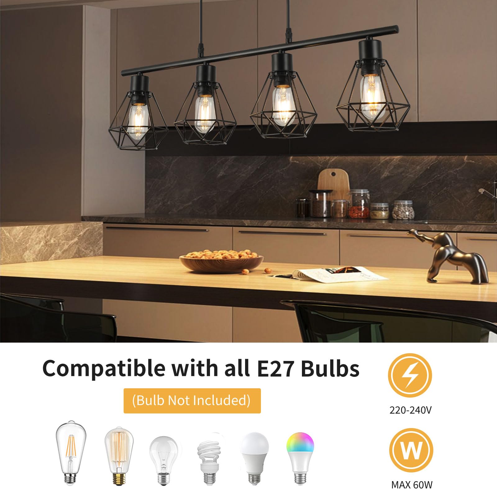 - Flexible Leuchtmittelwahl: Ausgestattet mit vier Standard E27-Fassungen, kompatibel mit einer Vielzahl von Leuchtmitteln wie LED, Halogen oder Vintage-Glühbirnen (nicht im Lieferumfang).