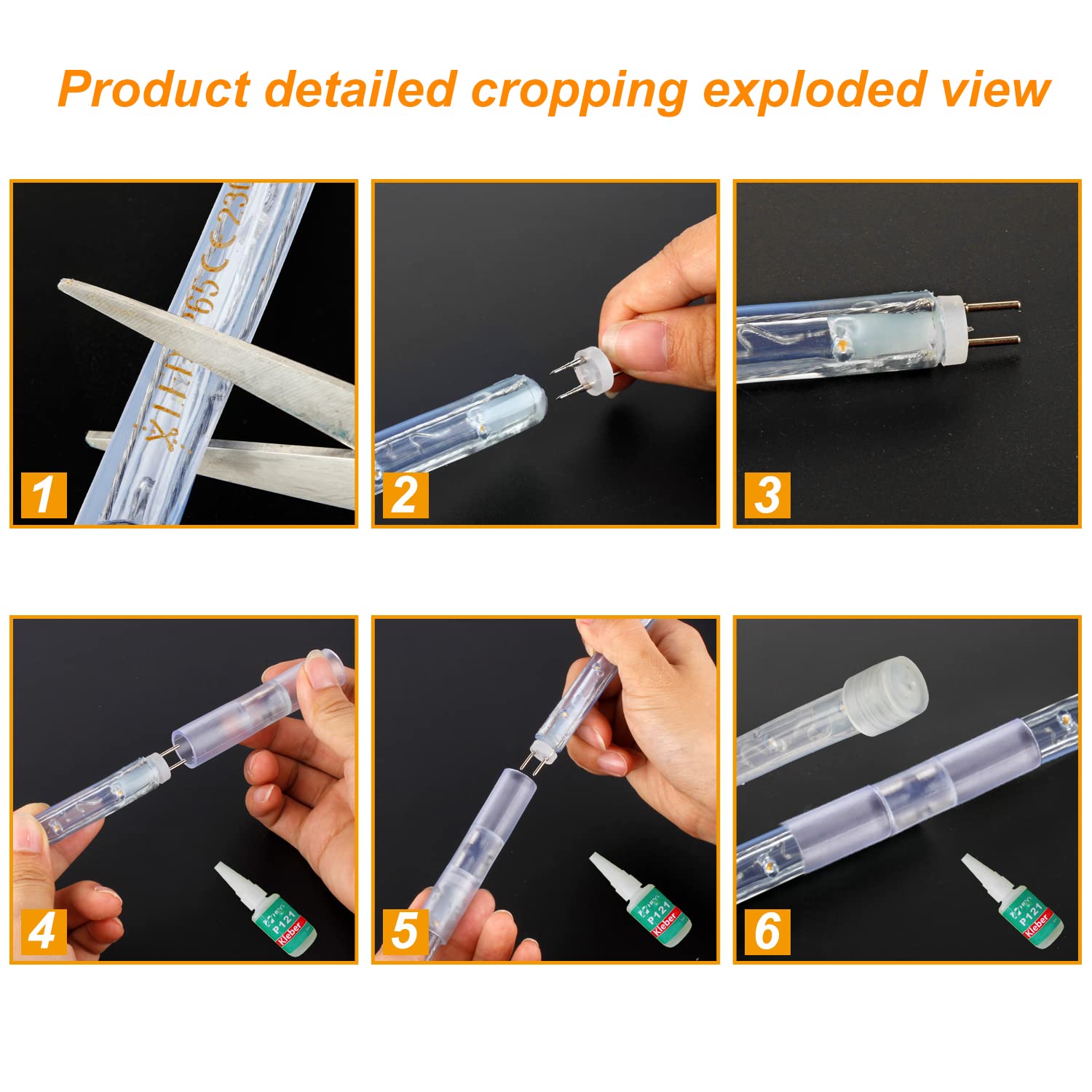 - Gesamtlänge: 30 Meter leuchtender Schlauch, ergänzt durch ein 1,5 Meter langes Netzkabel für einen flexiblen Anschluss.