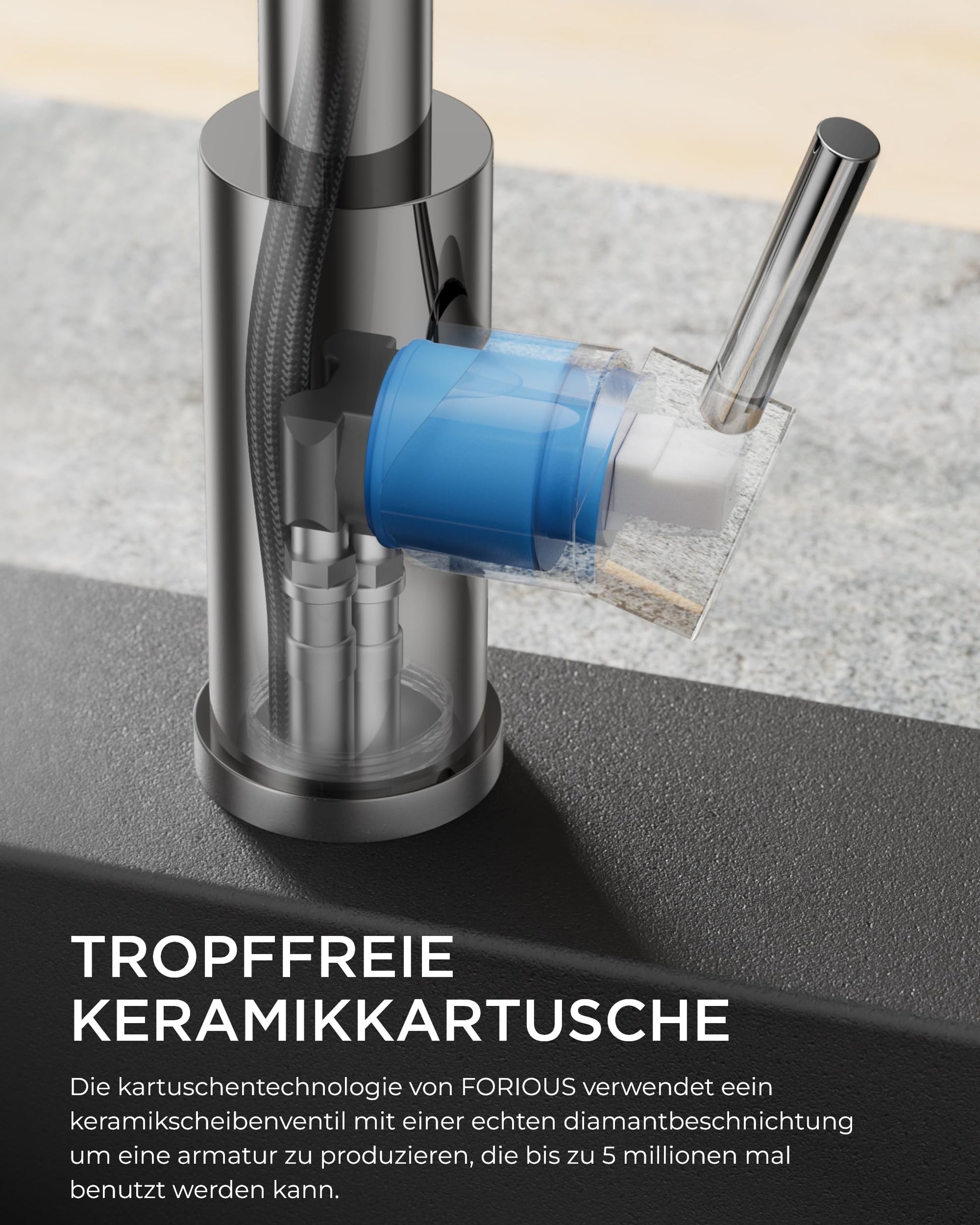 FORIOUS Küchenarmatur L-Form Ausziehbar - Polierter Chrom