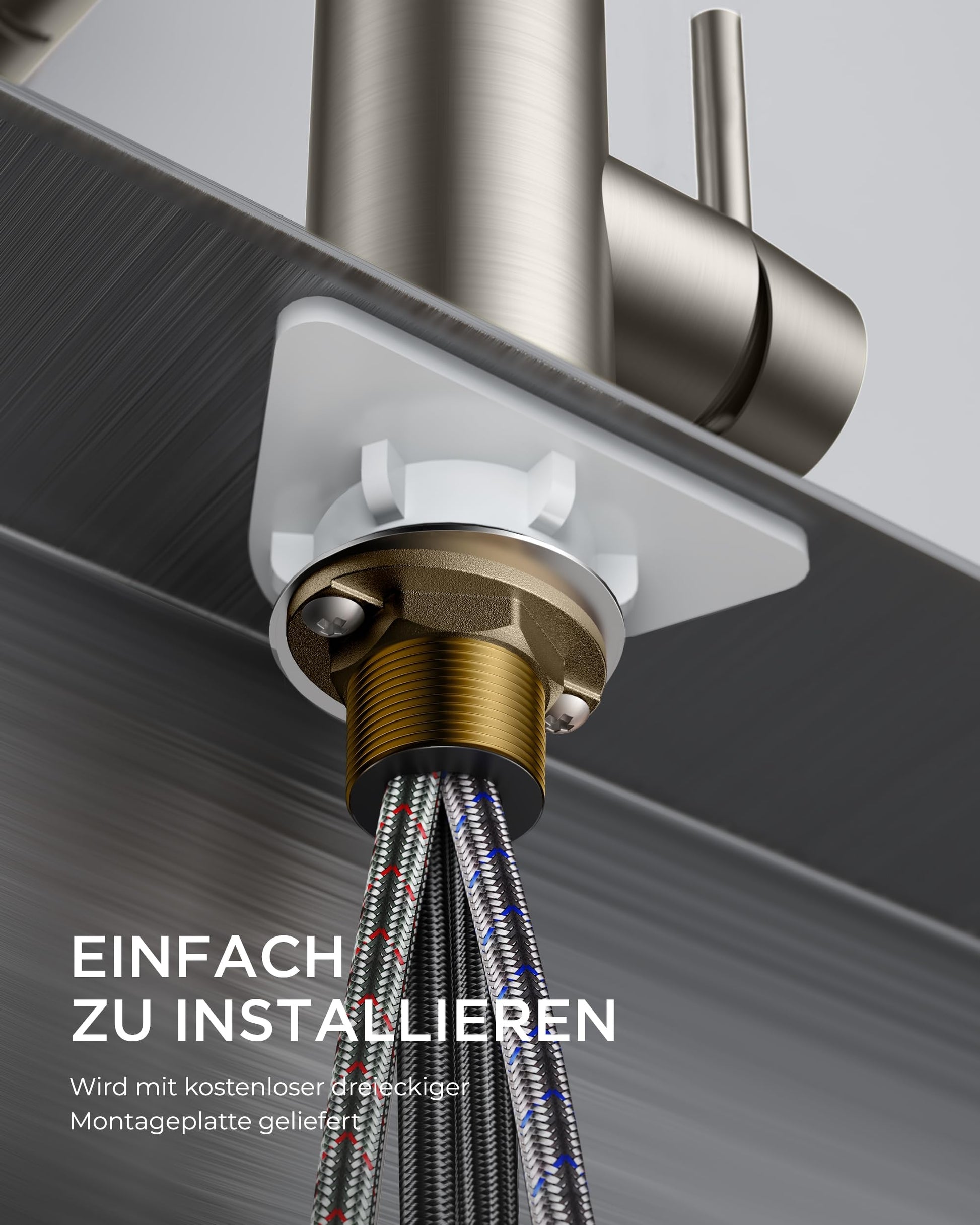 - 360° Schwenkbereich: Der Wasserhahn lässt sich vollständig um die eigene Achse drehen und bietet so maximale Bewegungsfreiheit und Flexibilität an Einzel- oder Doppelspülbecken.