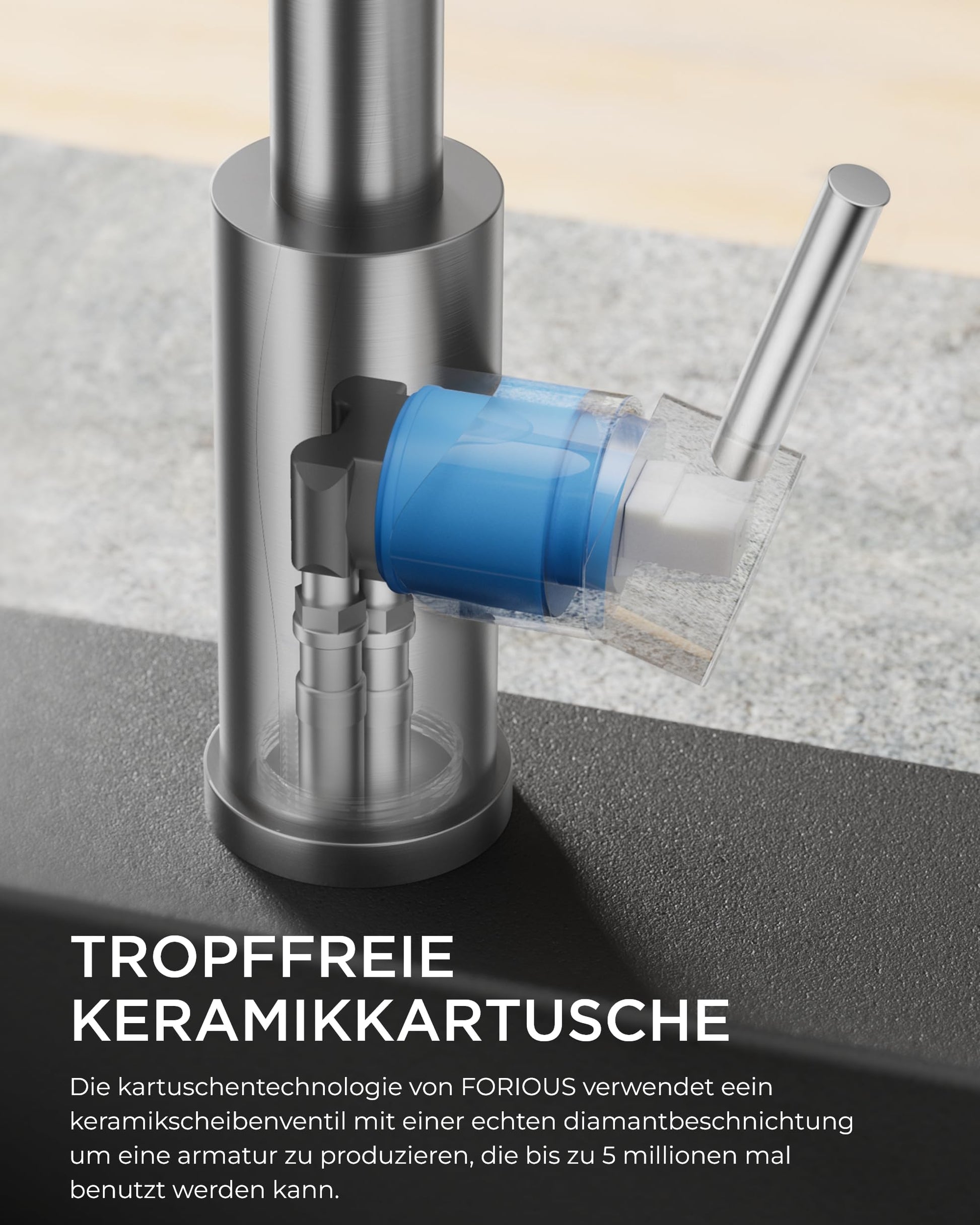 Welche Funktionen bietet die FORIOUS Küchenarmatur, um die tägliche Küchenarbeit zu erleichtern?