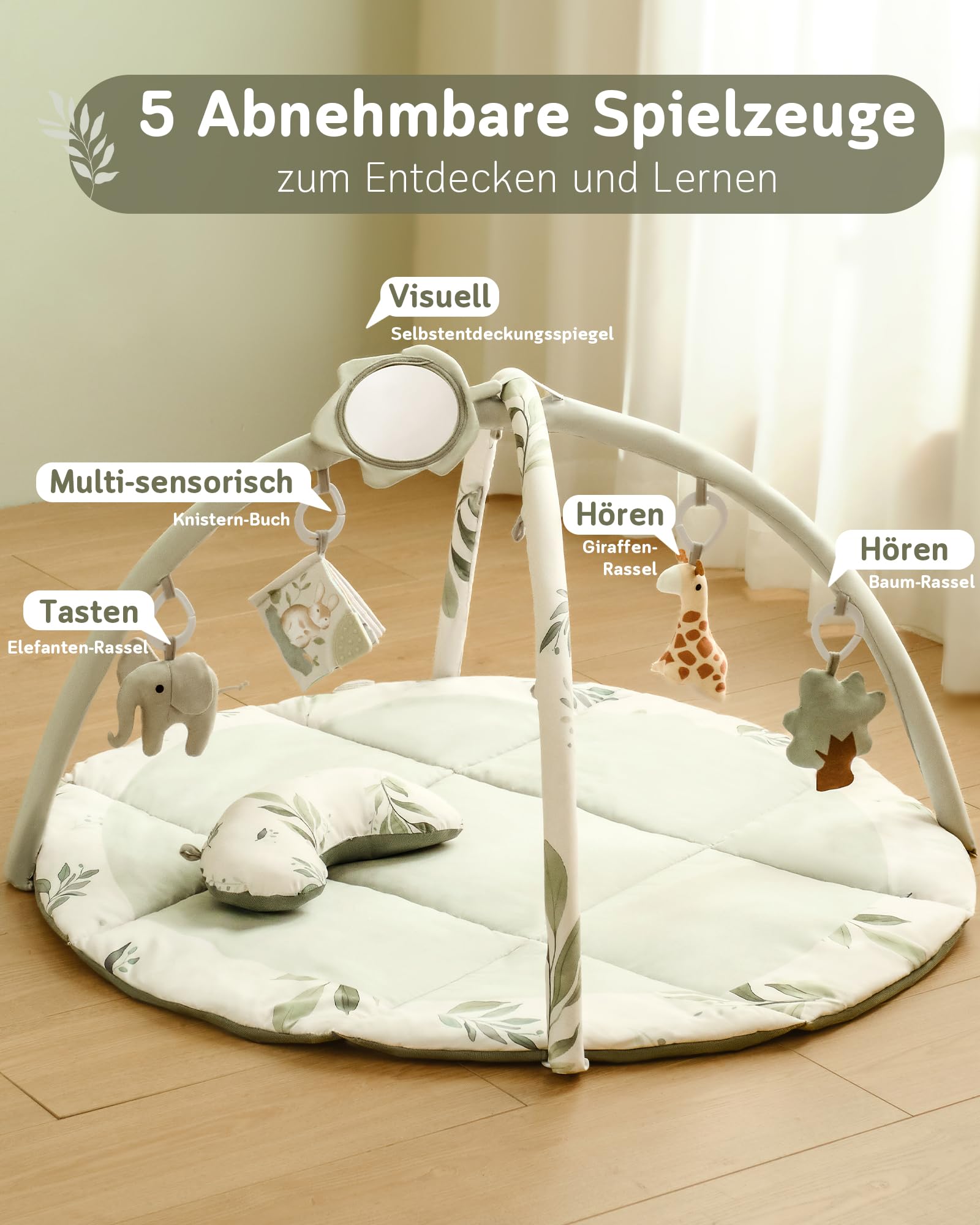 Fortella Baby Spielbogen mit Krabbeldecke & Sensorik – Salbeigrün