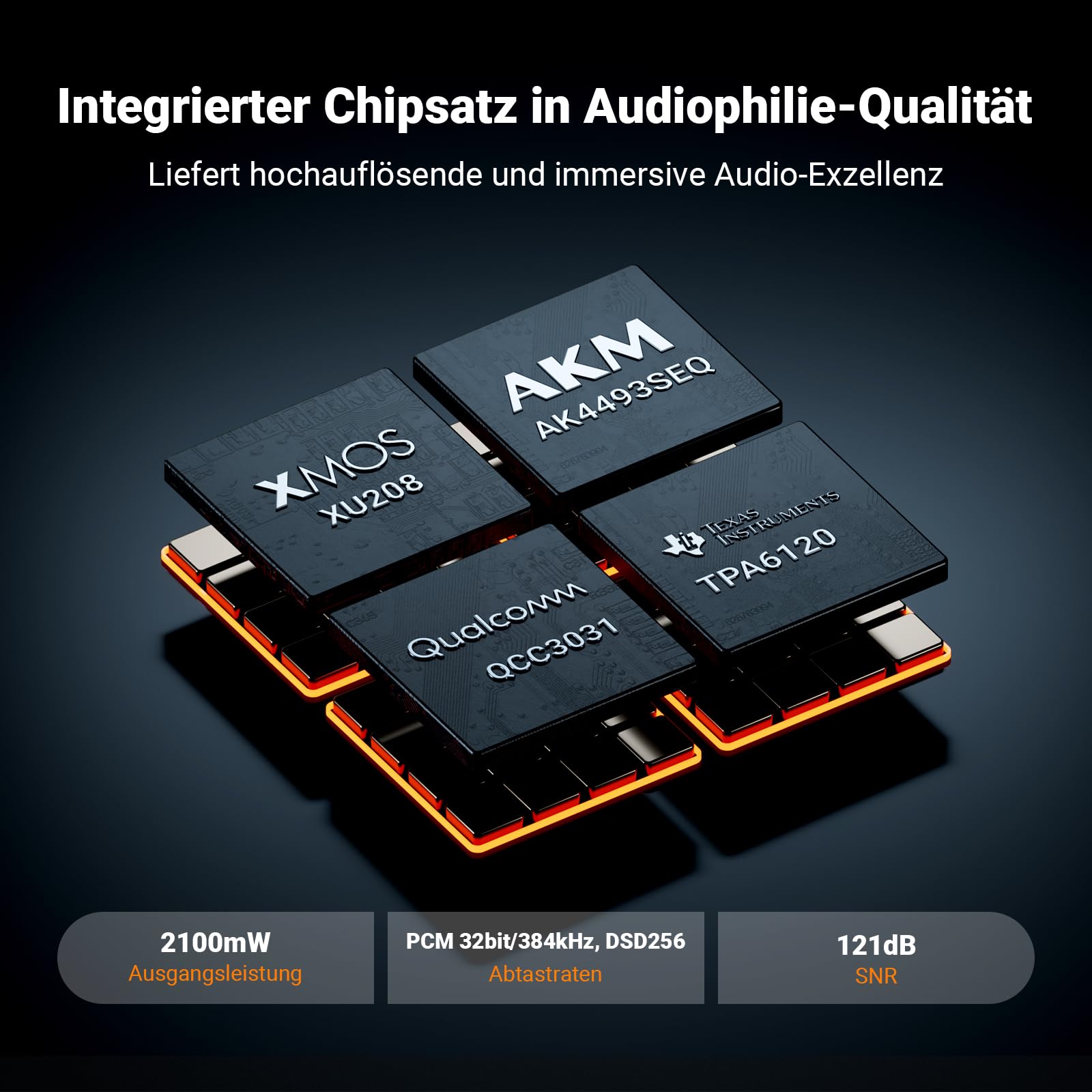 - Audiophile Klangqualität: Ausgestattet mit einem AK4493S DAC-Chip, dem XMOS XU208 USB-Prozessor und TPA6120 Verstärker für eine präzise und hochauflösende Klangwiedergabe bis PCM 384kHz/32bit und DSD256.