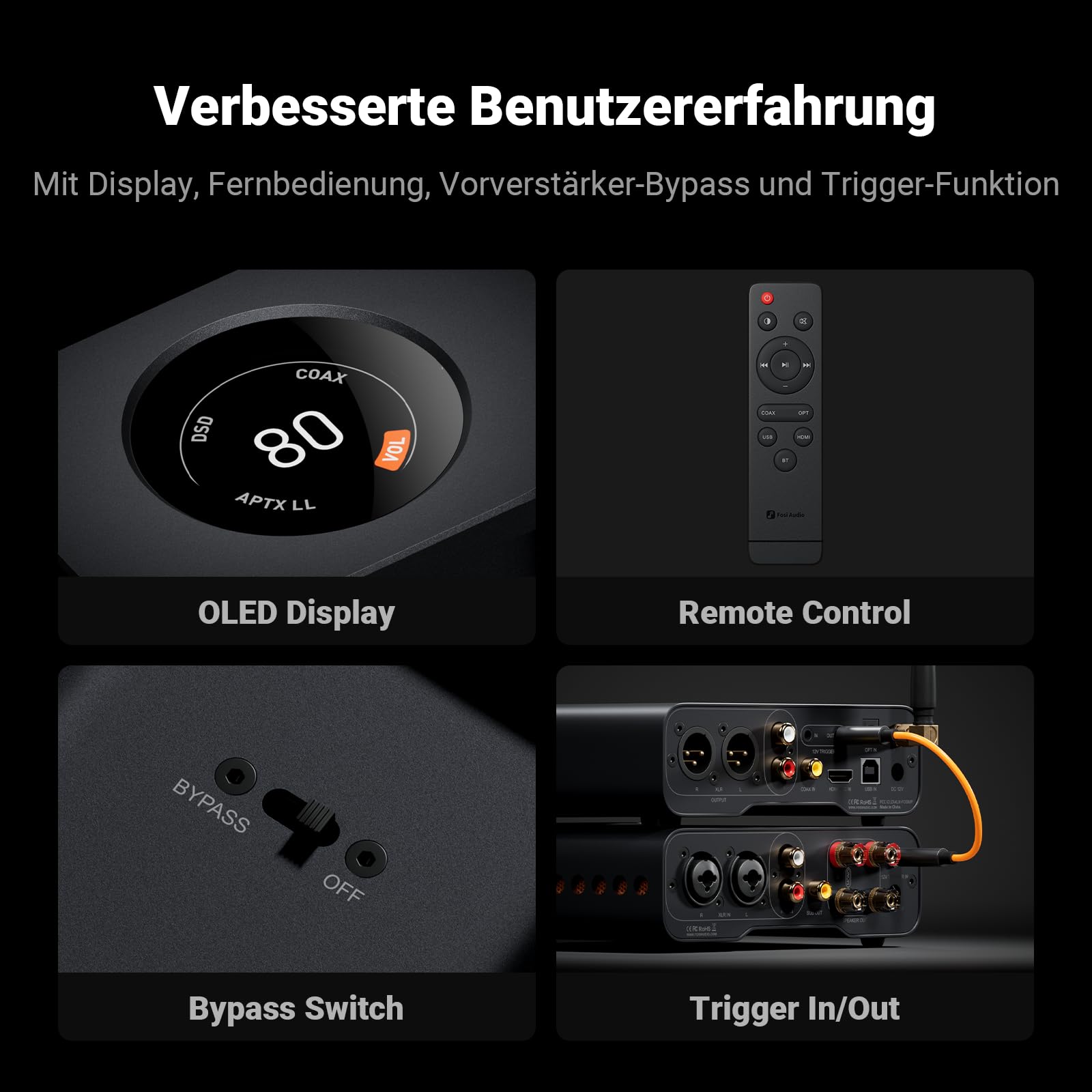 - Intuitive Bedienung: Ein klares 1.5-Zoll-OLED-Display, eine mitgelieferte Fernbedienung und ein 12V-Trigger-Anschluss sorgen für eine einfache und komfortable Steuerung Ihrer gesamten Anlage.