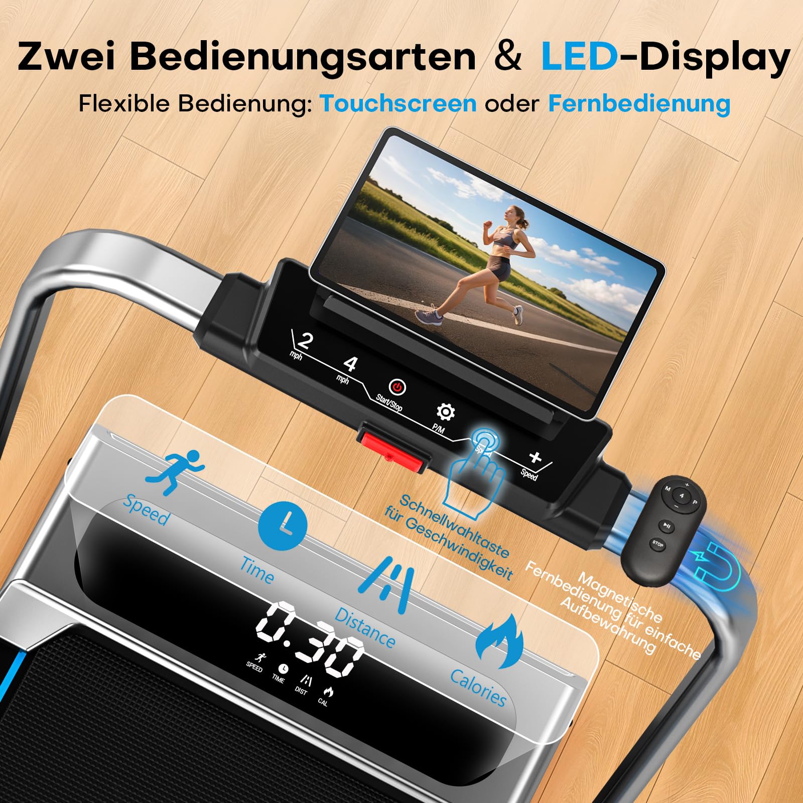 - Intuitive Bedienung: Grosses LED-Display zur Anzeige der Trainingsdaten und eine magnetische Fernbedienung für einfache Geschwindigkeitsanpassungen.