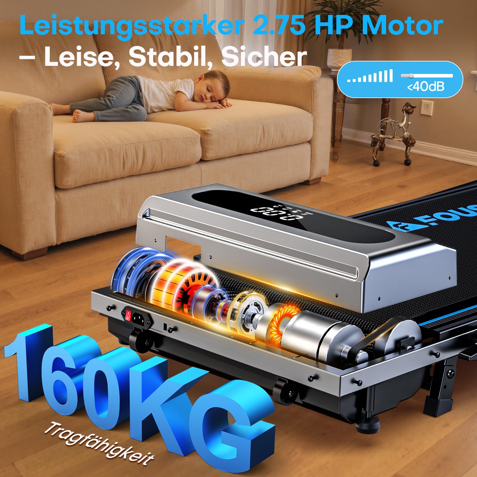 Ja, das Laufband ist mit seinem Geschwindigkeitsbereich ab 1 km/h ideal als Walking Pad für das Arbeiten am Schreibtisch geeignet. Dank des bürstenlosen 2.75-PS-Motors ist es mit unter 40 dB extrem leise, sodass Sie weder Kollegen im Büro noch Ihre Familie zuhause stören.