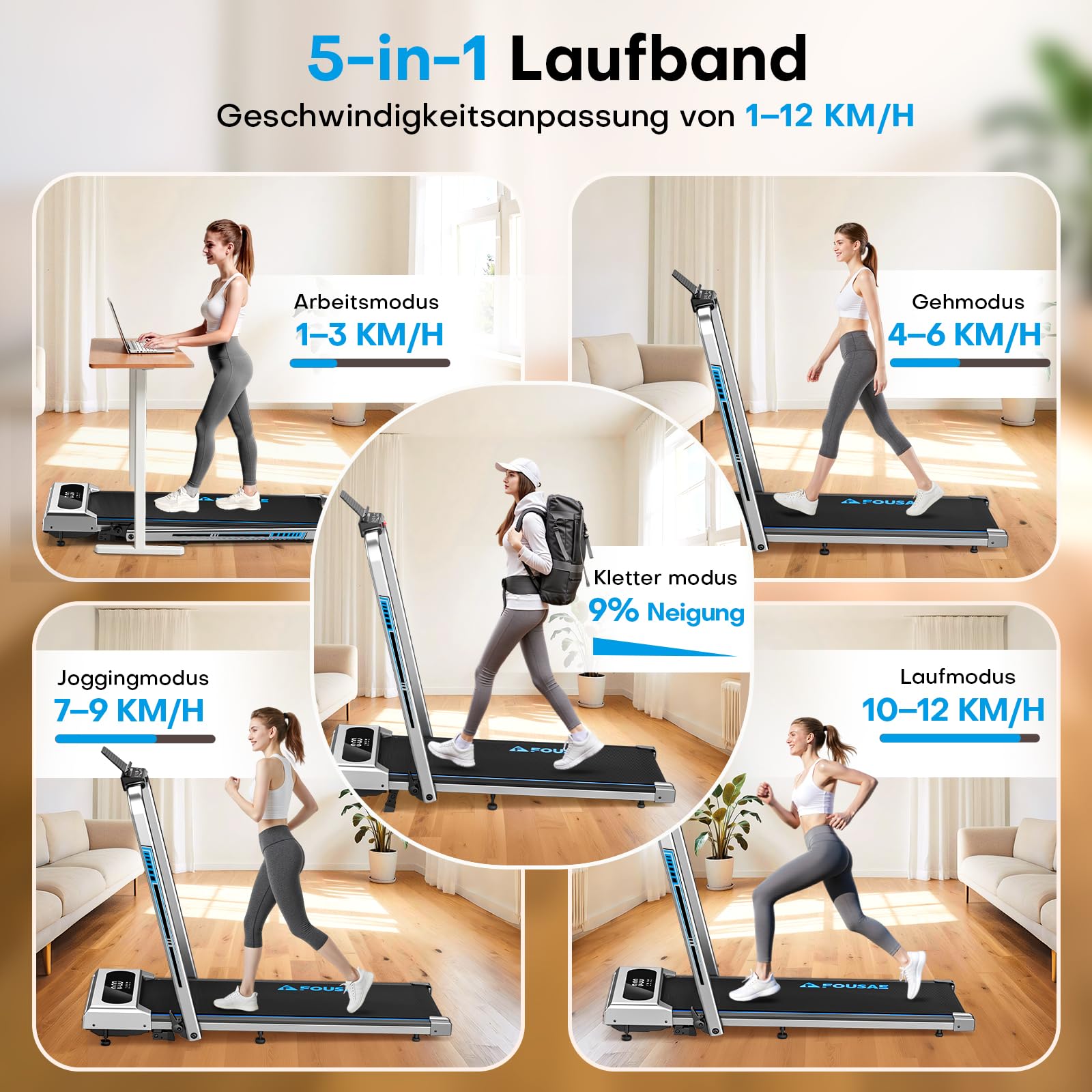FOUSAE 5 in 1 Walking Pad Klapp-Laufband – 12km/h, 9% Steigung
