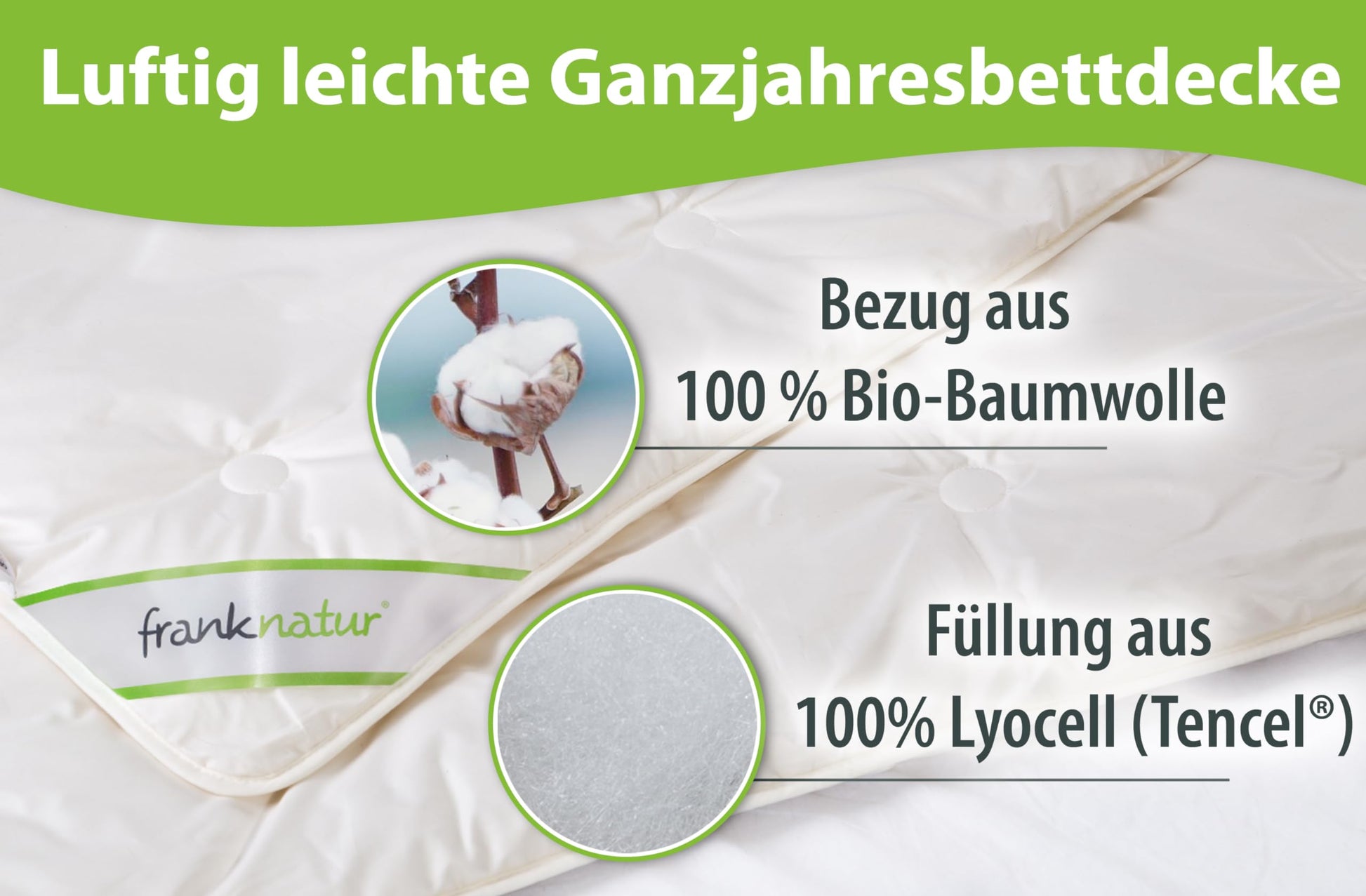franknatur Ganzjahresdecke Lyocell Tencel Bettdecke 135x200