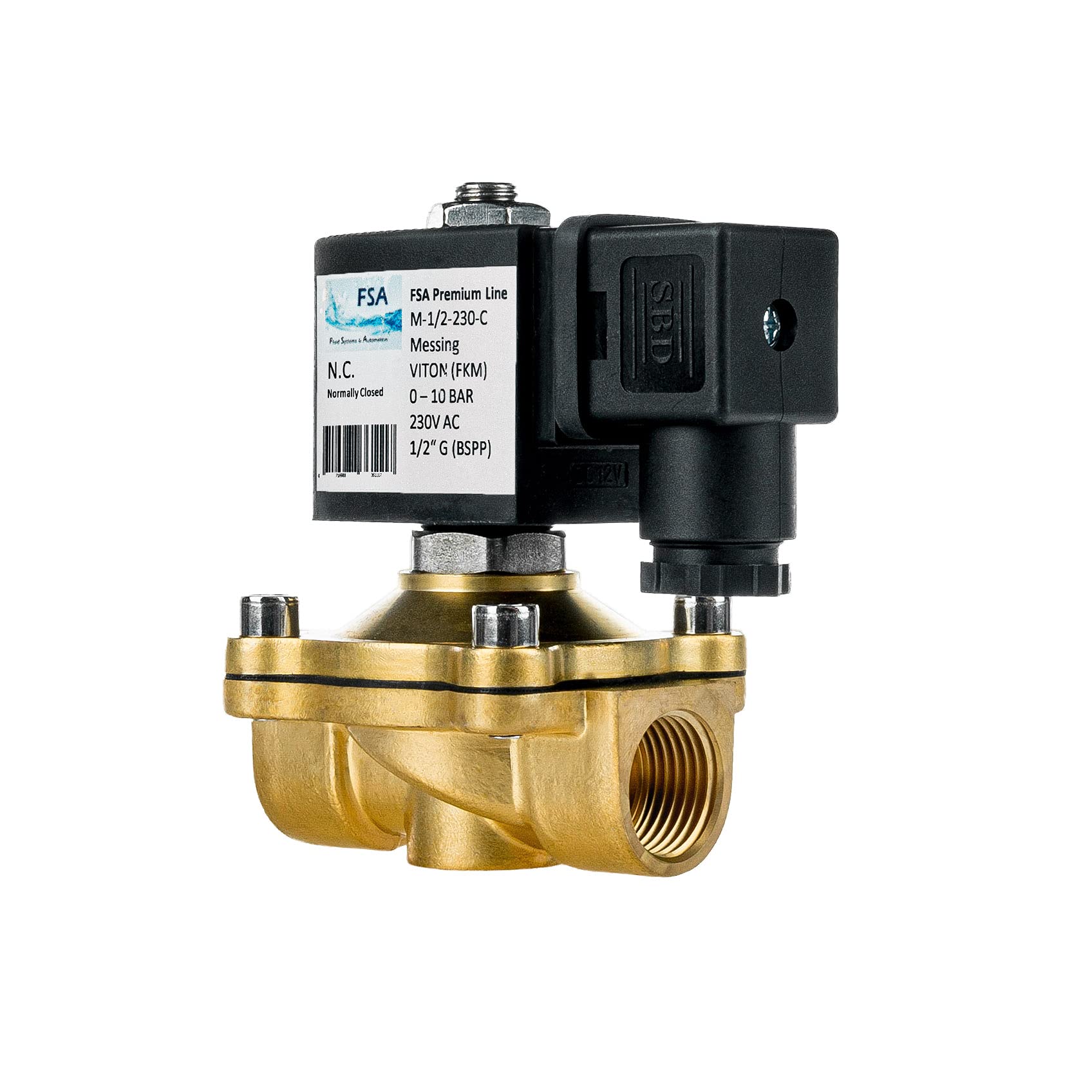 FSA Messing Magnetventil 1/2" 230V AC Viton stromlos geschlossen