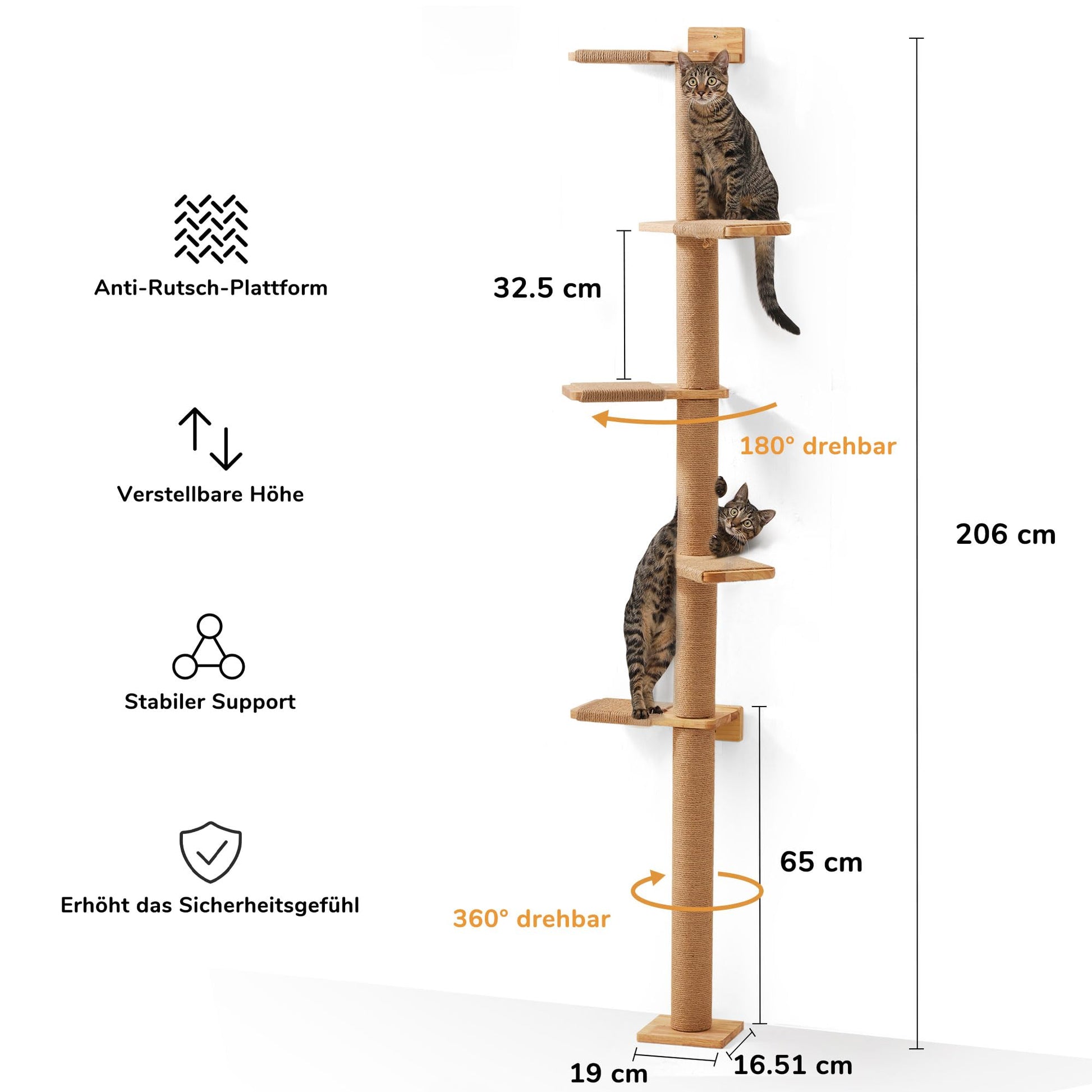 Bieten Sie Ihrem Stubentiger das ultimative, raumhohe Klettererlebnis, das Sicherheit, Funktionalität und natürliches Design elegant vereint.